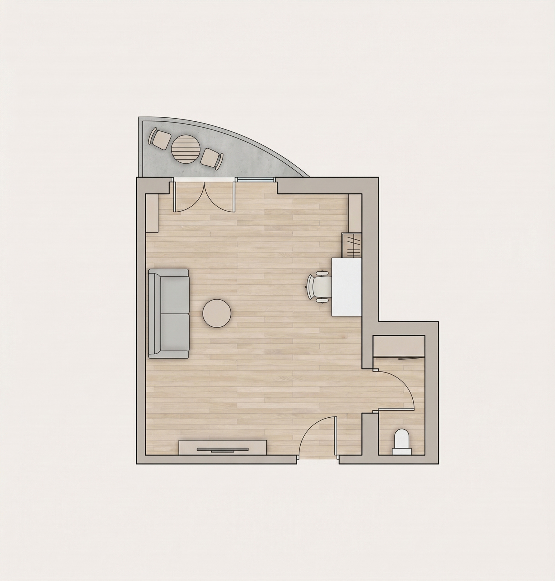 Ferestrele si balconul sunt orientate spre strada Turda, oferind o minunata priveliste spre Parcul Regina Maria si Arcul de Triumf.