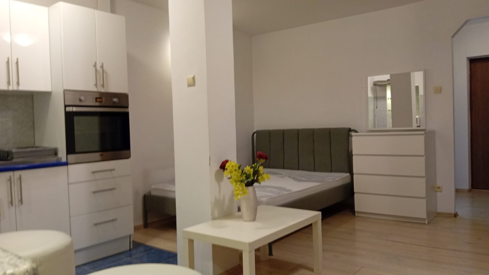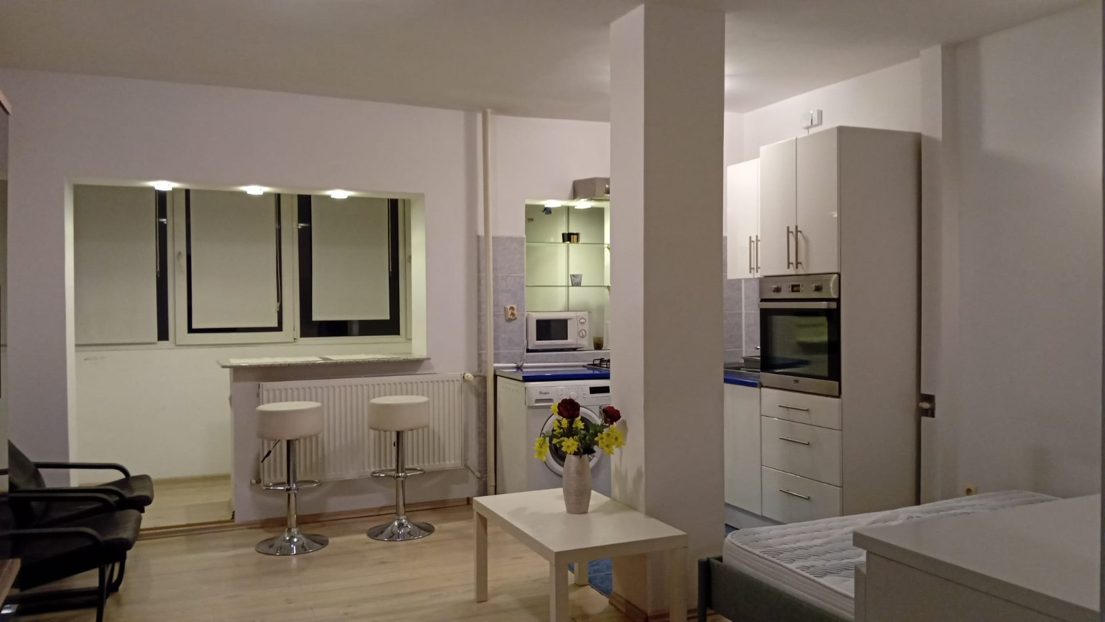 TITULESCU - BANU MANTA - PIATA VICTORIEI garsoniera foarte spatioasa si luminoasa orientata spre SUD, formata dintr-o camera mare, vestibul cu dressing incapator, baie cu cabina de dus, bucatarie deschisa si balcon inchis, la doar 2 minute de metrou BASARAB si 10 minute de metrou PIATA VICTORIEI . Este renovata: gresie ,faianta ,parchet, termopan, usa metalica, mobilata modern pe comanda – design unic, utilata complet: plita pe gaz, cuptor electric, hota, combina frigorifica, cuptor cu microunde, masina de spalat, TV LCD, aer conditionat, aspirator, jaluzele la balcon, semidecomandata, suprafata 34 mp, etaj 2/8, bloc 1982 reabilitat termic, zona verde cu numeroase facilitati: Parc Kiseleff, magazine, restaurante, etc.