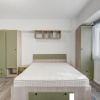 Bucataria este mobilata si utilata cu plita, cuptor, frigider, masina de spalat rufe si uscator de rufe. Baia este amenajata cu cabina de dus si obiecte sanitare noi. Camera este mobilata cu pat matrimonial, dulapuri pentru haine si o zona de luat masa si TV. Pardoselile sunt placate cu parchet laminat in camera si gresie in hol, baie si bucatarie.