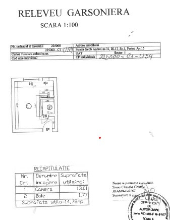 Garsoniera situata la parter, Str Iacob Andrei, bloc civilizat !