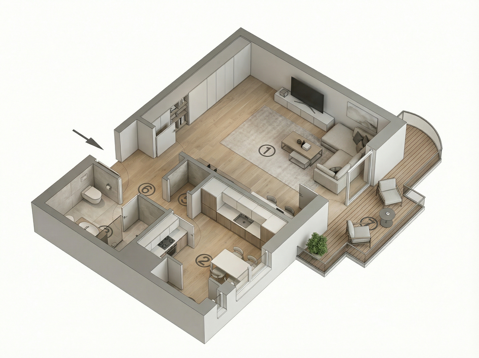 Configurație decomandat - cameră separată + bucătărie proprie + baie