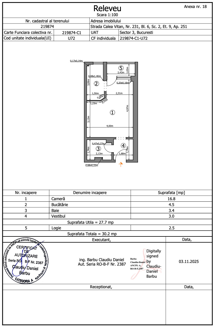 - S. utila totala:30.20 mp