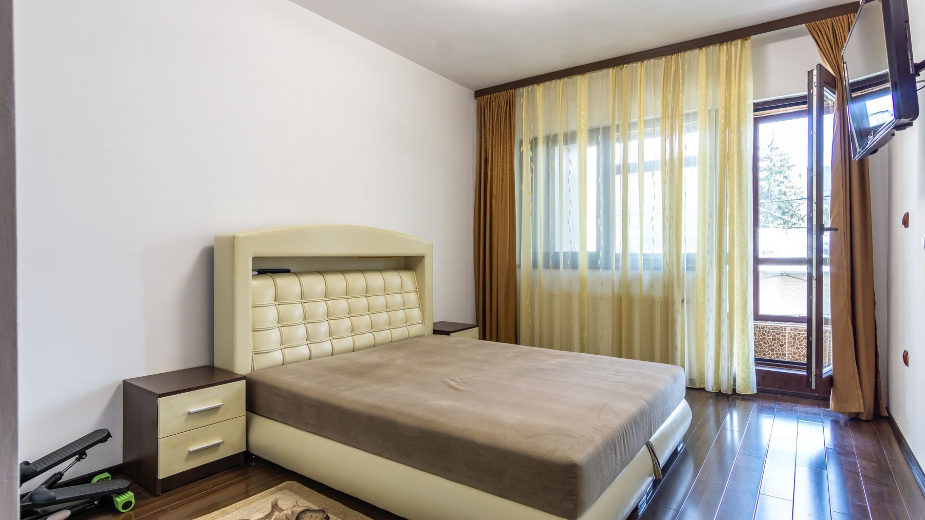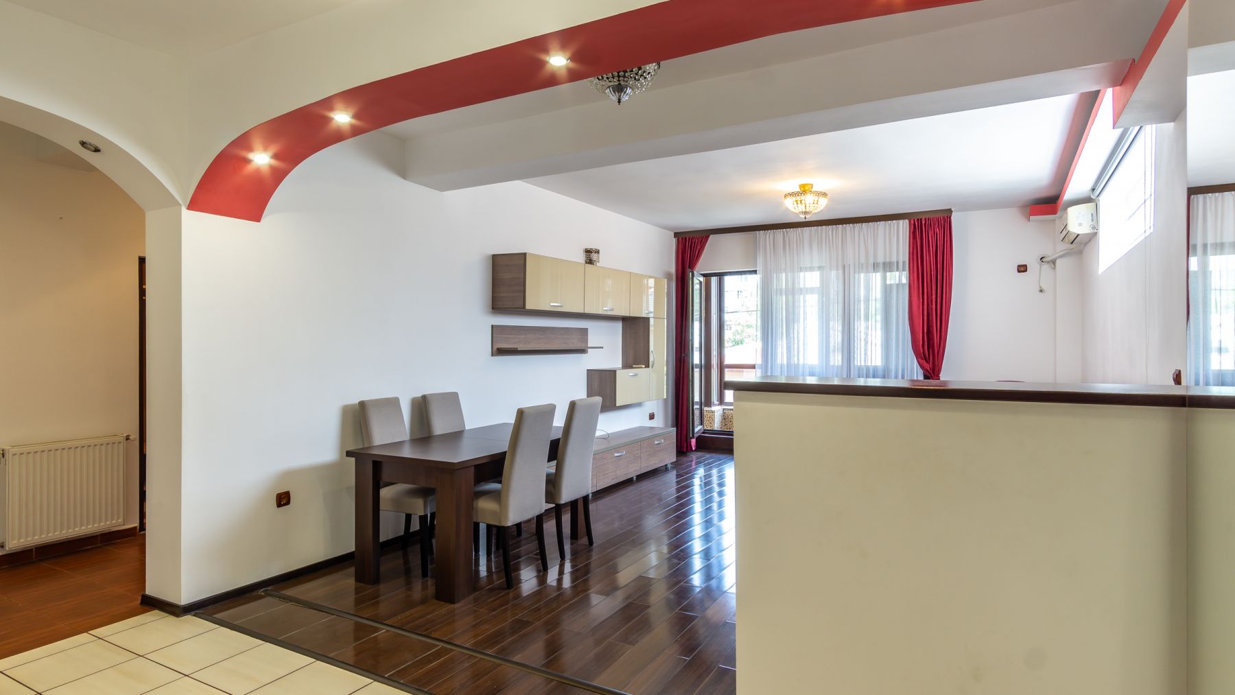 Locuinta se afla la etajul 1 si este complet mobilata si utilata, fiind dotata cu centrala termica pe gaze Ferroli, aer conditionat Whirlpool, combina frigorifica Beko, cuptor electric Whirlpool, plita pe gaze Whirlpool si hota cu ventilatie exterioara, masina de spalat rufe Indesit, tv tip LCD Samsung 108 cm diagonala.