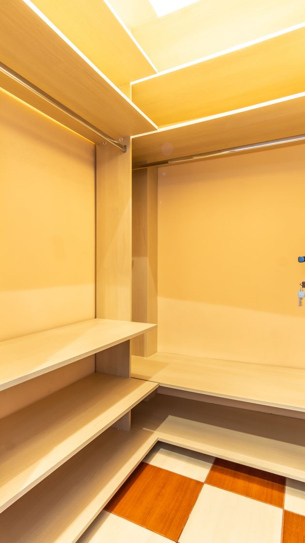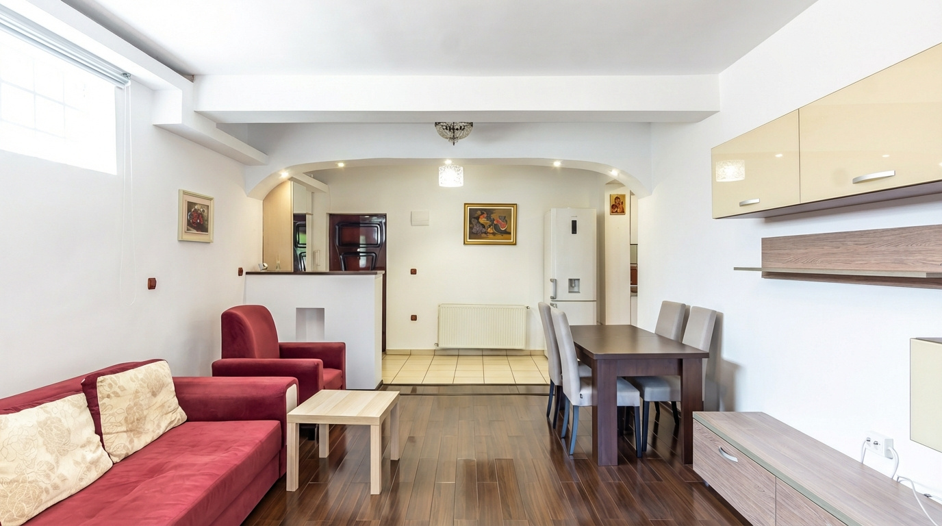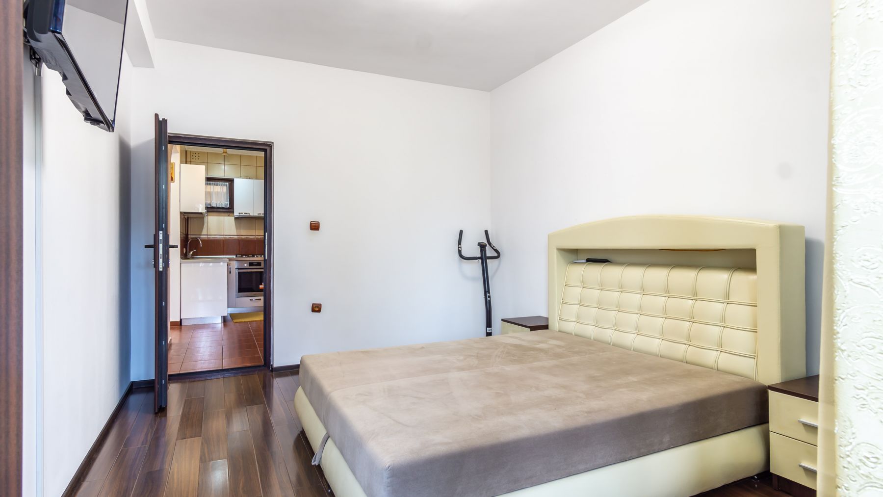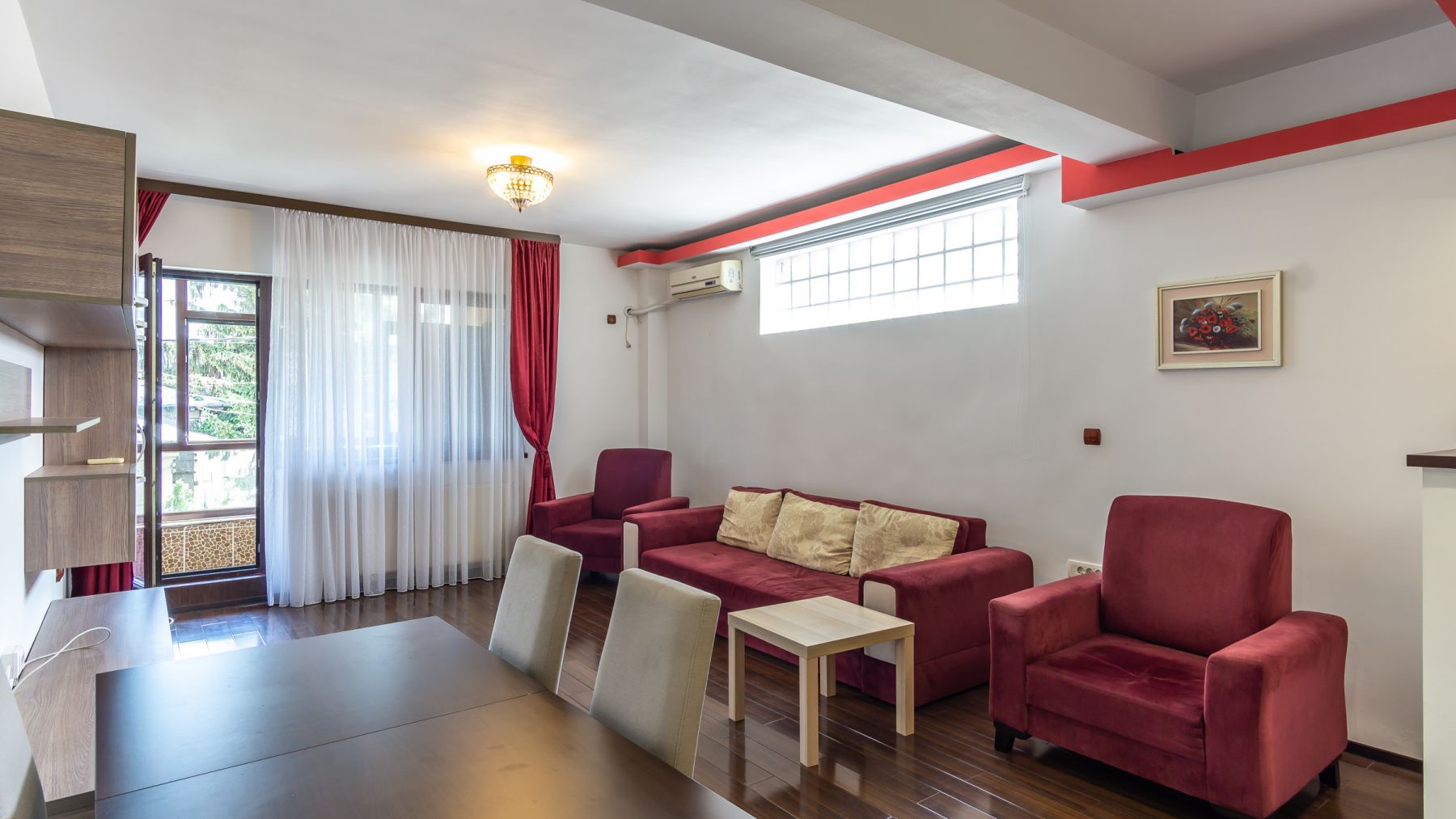 Livingul generos de 31,83 mp este dotat cu o canapea extensibila, iar dormitorul are dressing propriu.