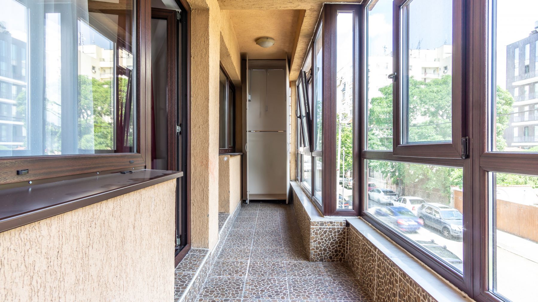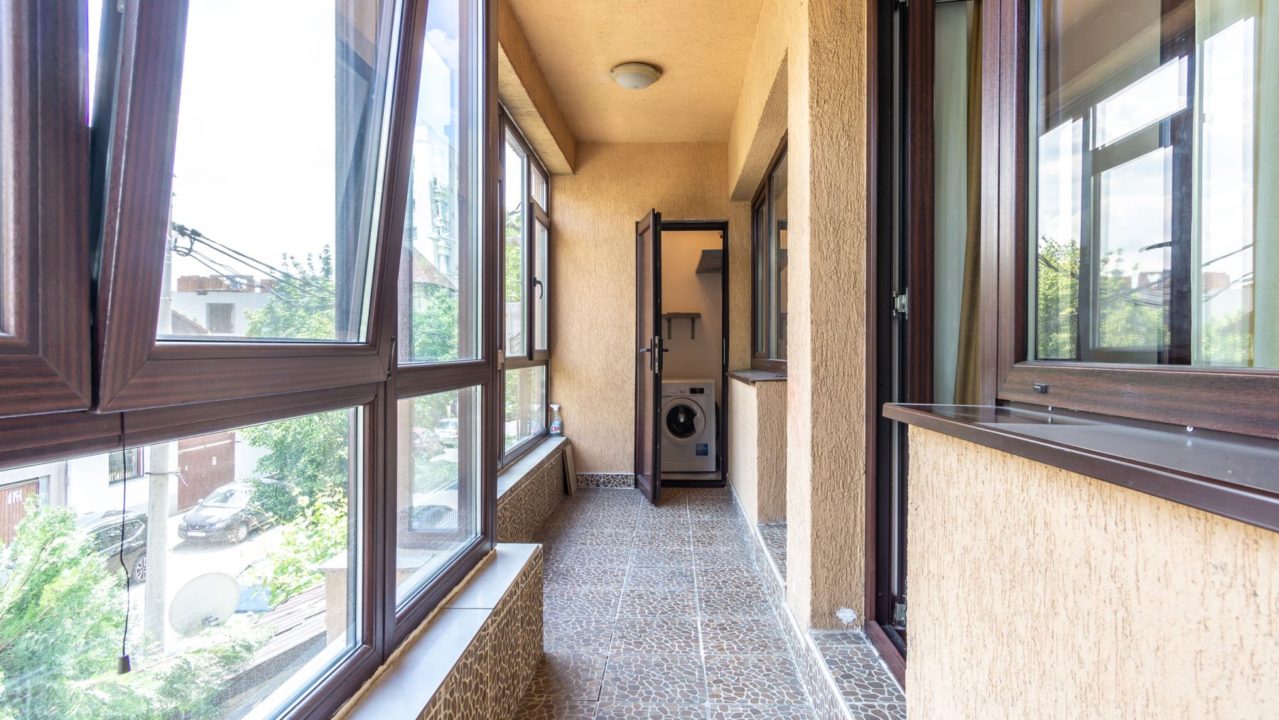 Baia are geam pentru aerisire si balconul inchis are o camera tehnica unde se afla centrala termica si masina de spalat.
