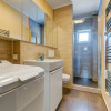 Baia este amenajata si echipata cu toate obiectele sanitare si masina de spalat rufe.