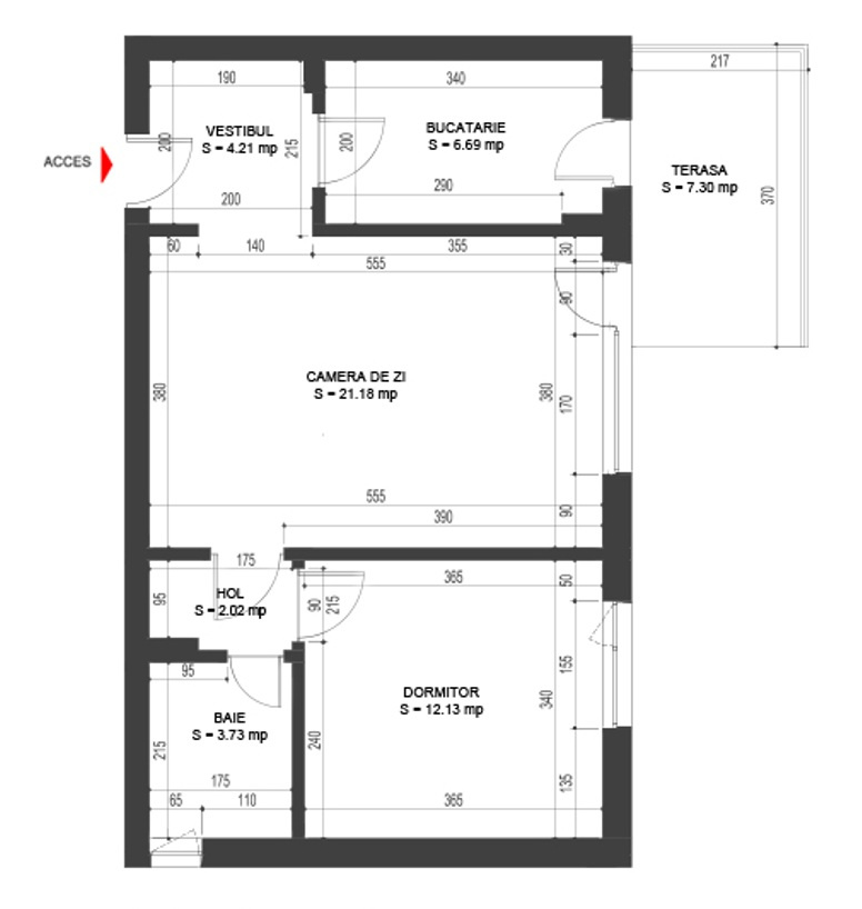 Suprafață totală: aprox. 60 mp (inclusiv balcon)