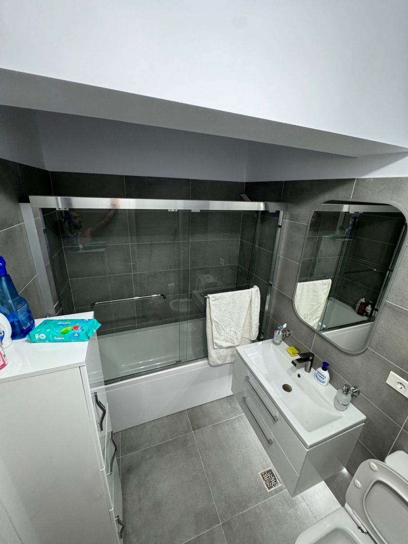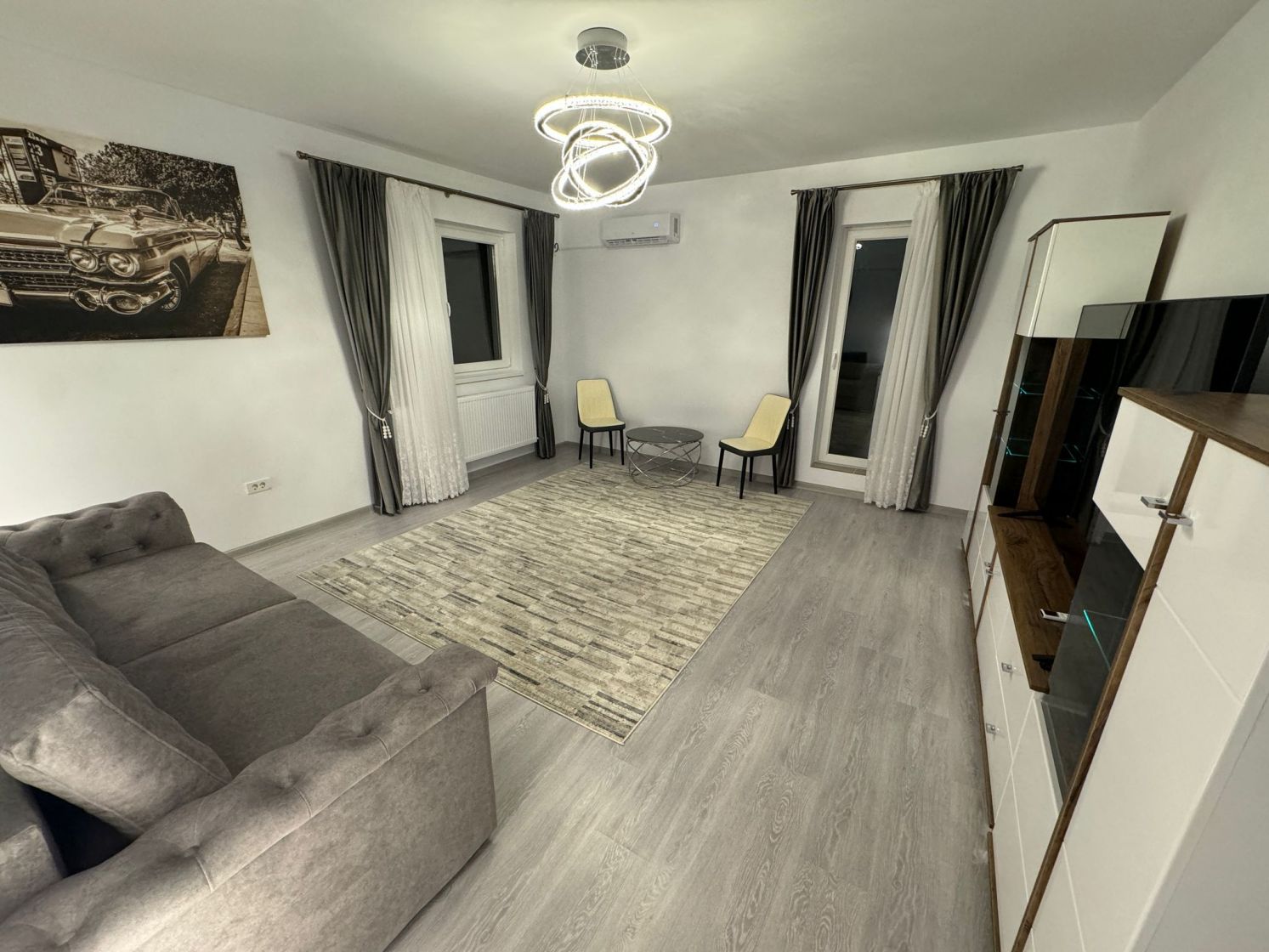Va oferim spre inchiriere un apartament de doua camere aflat linga Mall Grand Arena la cateva minute de statia de autobuz si 15 minute de mers pe jos de Metrou Aparatorii Patriei.Bloc cu regim redus de inaltime,finalizat in 2024,cu parcari subterane si acces securizat. Apartamentul este la etajul 1 blocul avand 6 nivele.Totul este nou si ultrafinisat.Electrocasnice de ultima generatie,centarla proprie,aer conditionat,intrerupatoare smart.Locul de parcare in demisolul blocului.