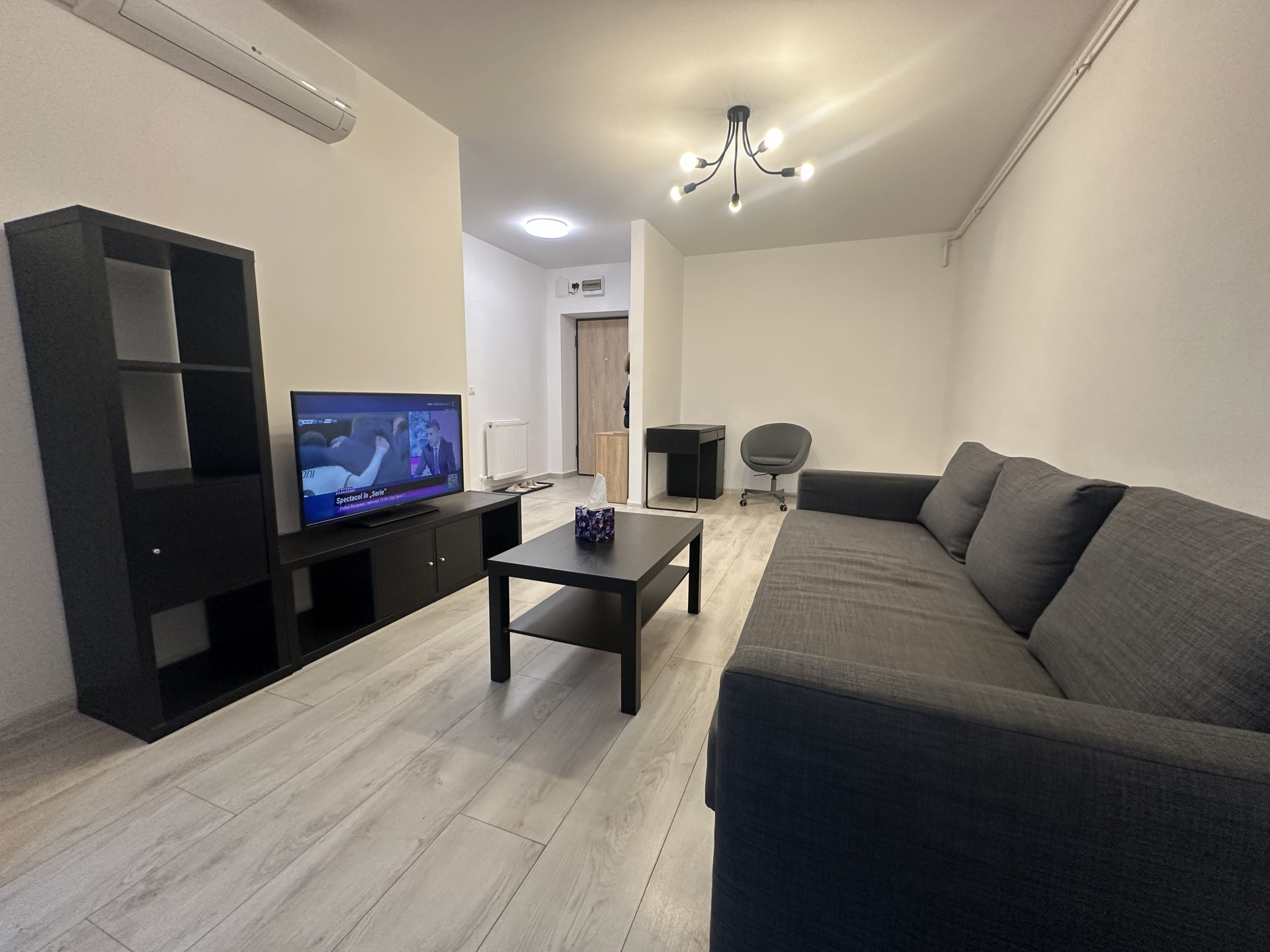 Apartament total mobilat si utilat, parcare subteran in complexul HILS Pallady, la 2 minute de metrou Anghel Saligny.In living : canapea extensibila, masa pentru cafea, comoda cu TV si A/C.Bucataria total mobilata: masa cu 4 scaune, aragaz, hota, frigider, centrala termica.Dormitor : pat matrimonial, 2 noptiere, dressing si acces la balcon.Baia mare cu cada si masina de spalat rufe.In hol este un pantofar si cuer.Apartament situat la etajul 8 din 11 intr-un bloc civilizat construit in 2023.