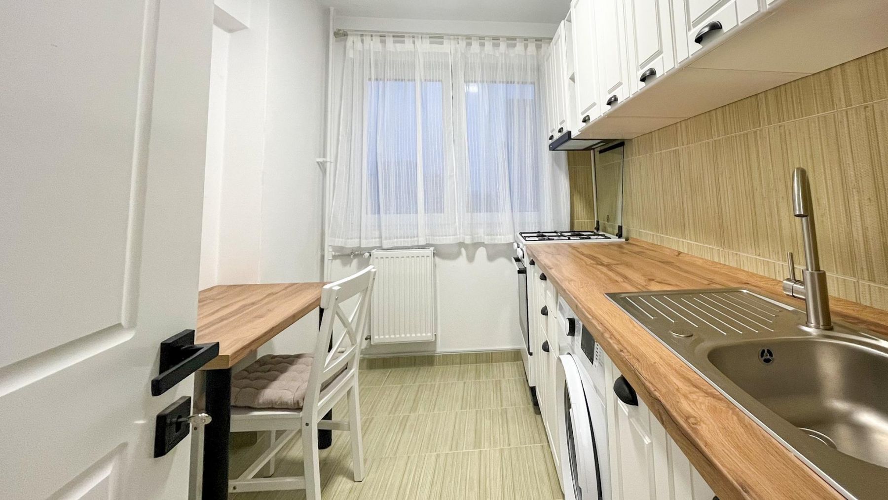 Complet renovat in 2025, acesta se afla la prima inchiriere si ofera un confort desavarsit datorita mobilierului nou, ales cu atentie pentru un design elegant si functional. Compartimentarea semidecomandata asigura un spatiu aerisit, iar bucataria este complet utilata, gata sa satisfaca cele mai exigente nevoi.