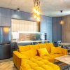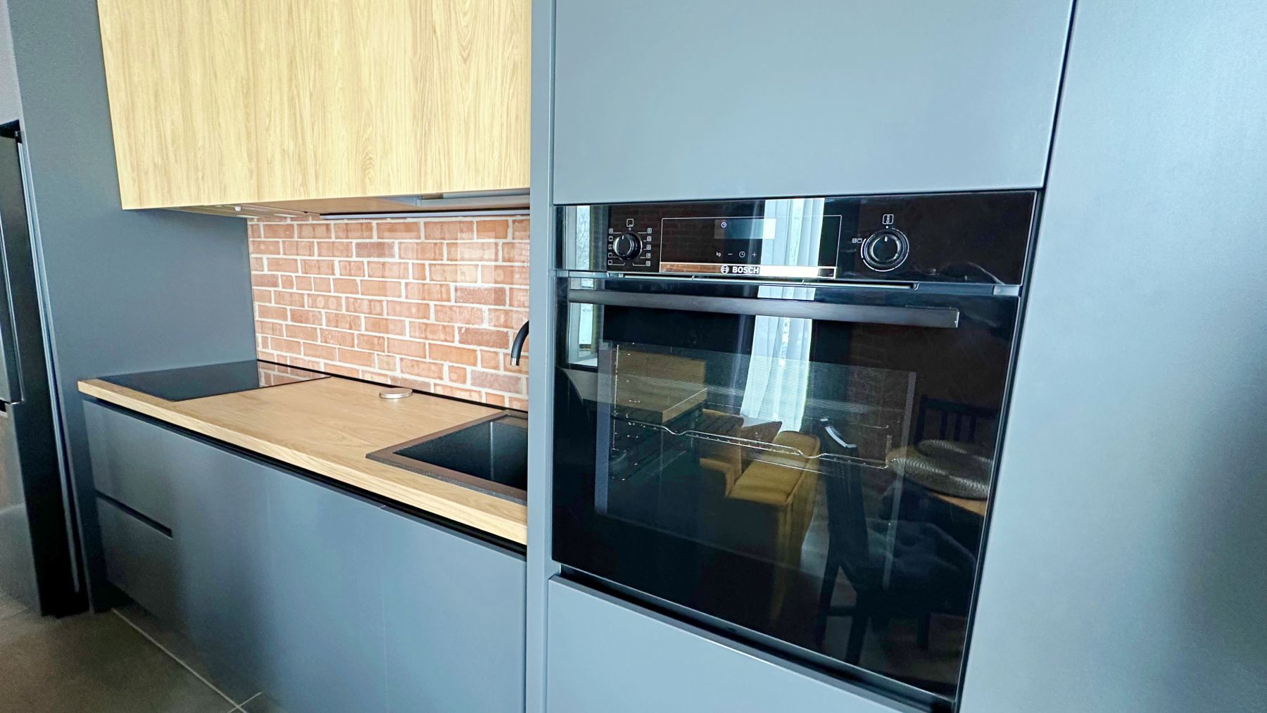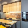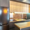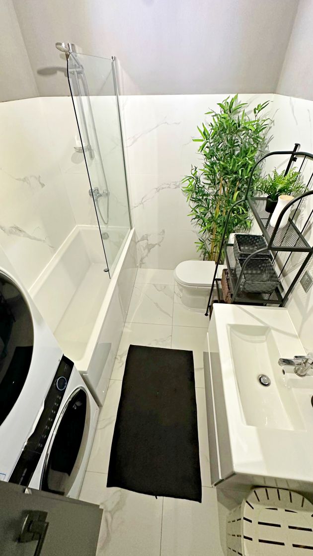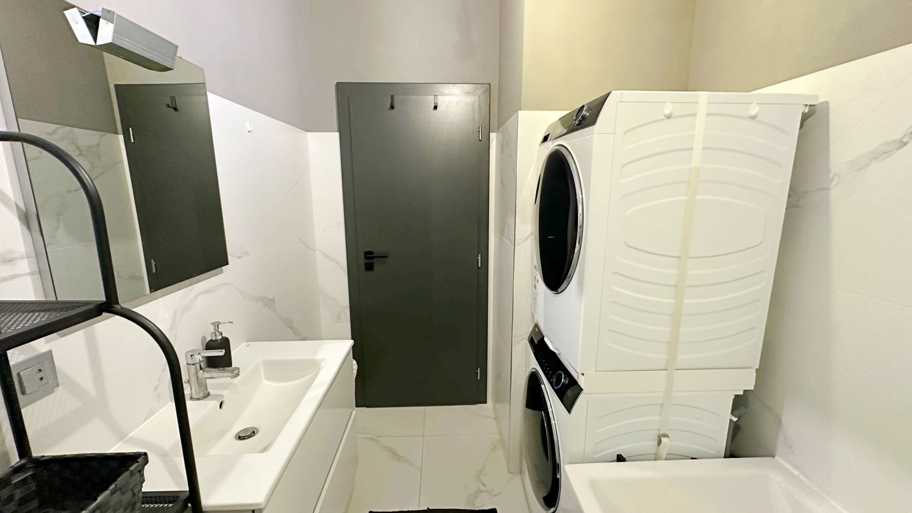 Apartamentul este complet mobilat si utilat, avand masina de spalat rufe si uscator, TV plasma 155 cm diagonala, cuptor si plita electrice, hota, cuptor microunde, expresor, aspirator, masina de spalat vase si frigider side by side.