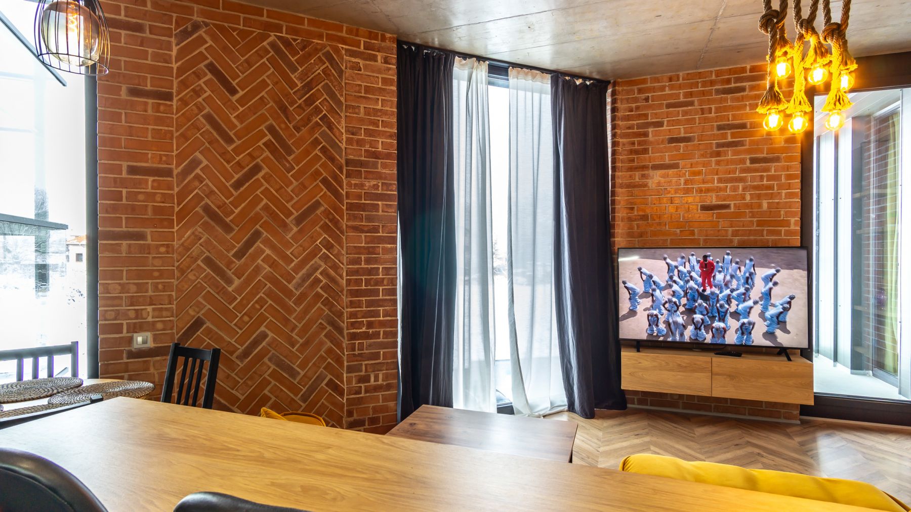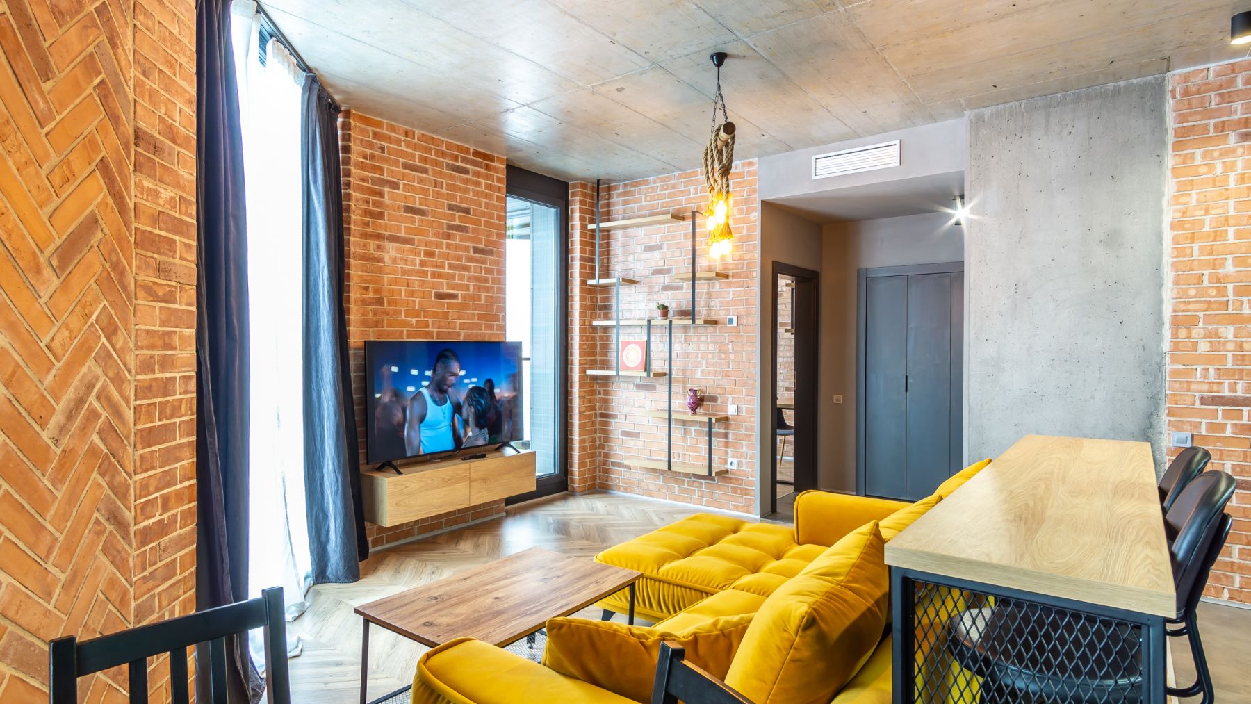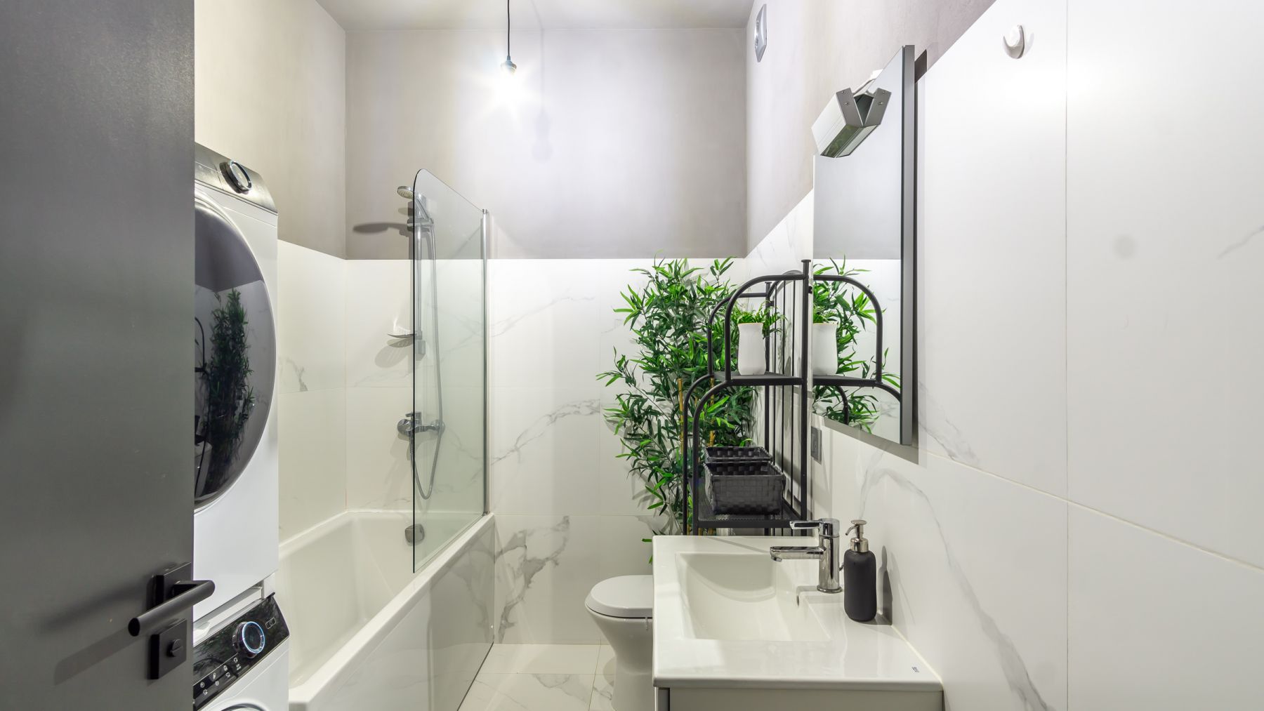 Apartamentul este complet mobilat si utilat, avand masina de spalat rufe si uscator, TV plasma 155 cm diagonala, cuptor si plita electrice, hota, cuptor microunde, expresor, aspirator, masina de spalat vase si frigider side by side.