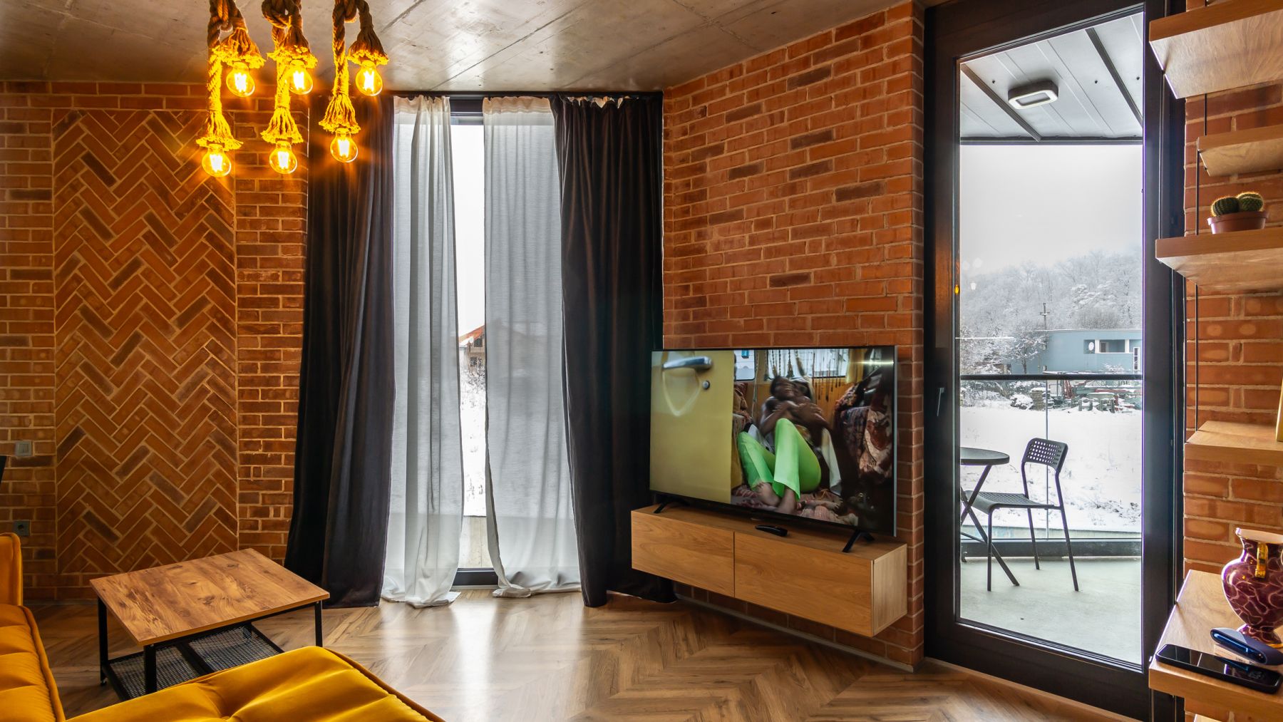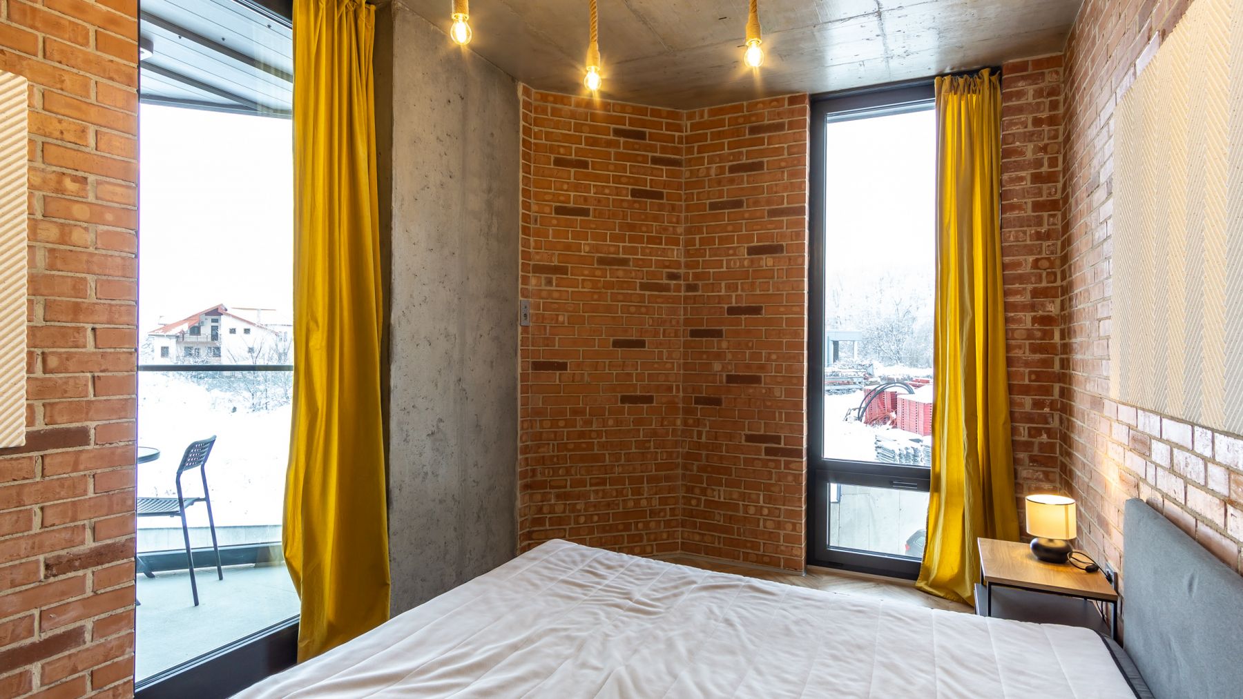Suprafetele vitrate mari, din pardoseala pana in tavan, asigura o exceptionala priveliste spre padure si o infuzie de aer proaspat.