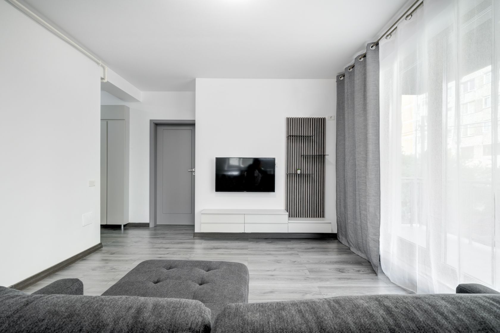 Va prezint spre inchiriere un apartament cu 2 camere, in suprafata total utila de 59.8 mp situat la etajul 1, in ansamblul NearCenter Residence , pe strada George Valsan 45-47.