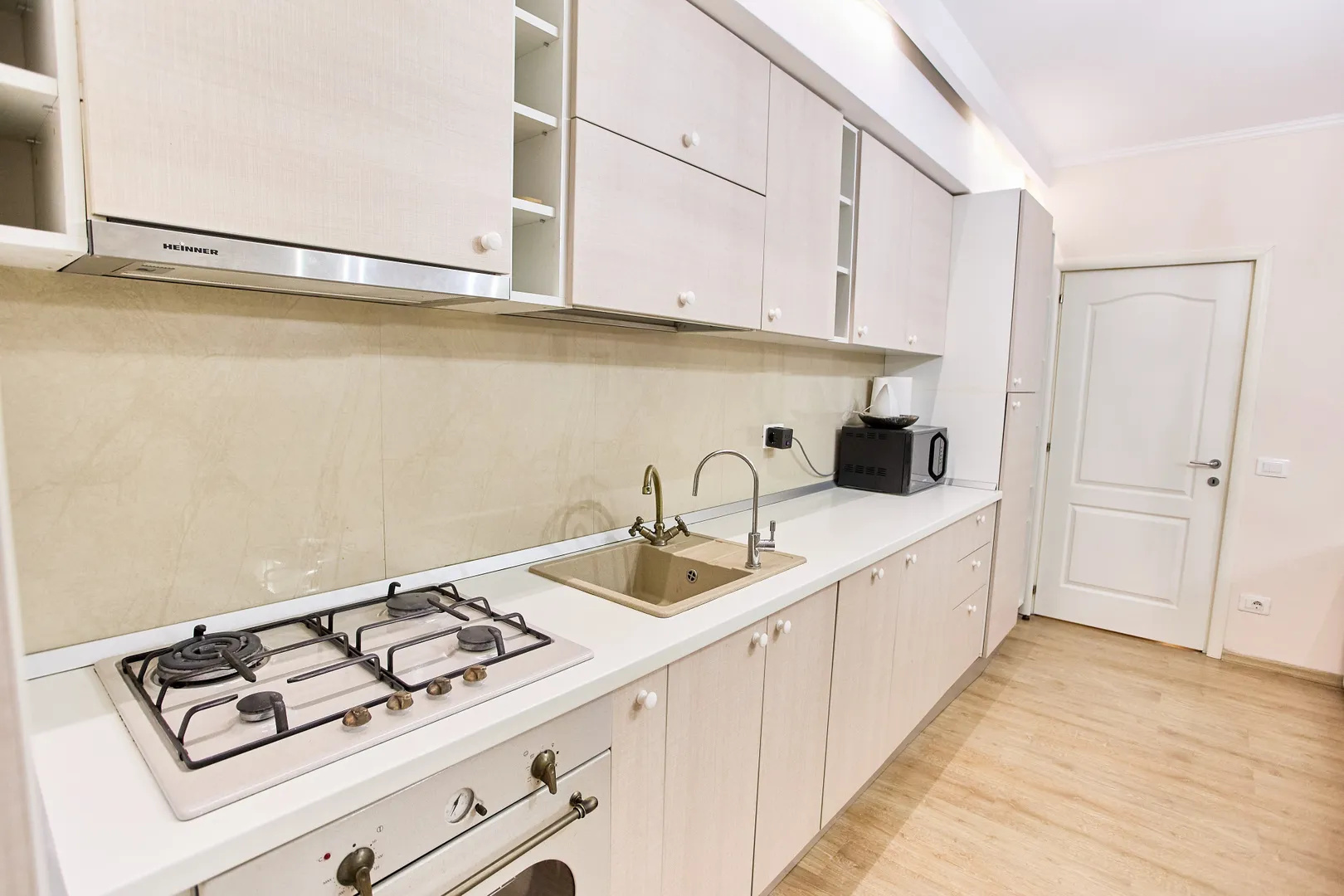 Living open-space cu bucătărie echipată, dormitor spațios, centrală proprie, 2 aparate A/C, baie cu geam, balcon multifunctional.