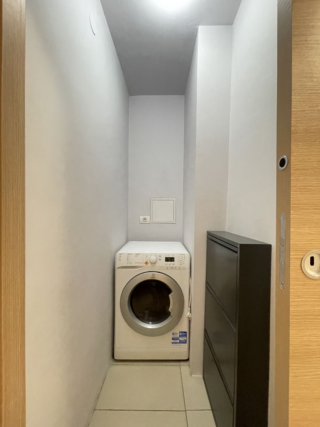 Imobilul este foarte spatios, avand aproximativ 60mp cu tot cu balcon. Exista o incapere speciala pentru masina de spalat rufe, care este prevazuta si cu uscator. Pe holul de intrare exista un dressing pe tot peretele, ce deserveste foarte bine ca spatiu de depozitare. Apartamentul este decomandat, ceea ce ofera privacy fiecarei camere. Este perfect pentru o familie cu sau fara copil, plus ca in sufragerie exista si un pat individual de o persoana in cazul in care exista oaspeti ce stau peste noapte, sau pentru copil.
