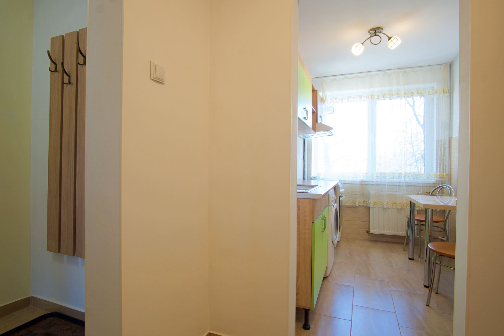 Locuinta aflata la etajul 1 din 10 intr-un bloc reabilitat termic, este complet mobilata si utilata fiind dotata cu canapea extensibila, frigider, aragaz, hota, masina spalat rufe si tv tip LCD.Apartamentul are suprafață utilă totala de 54 mp, oferind un balcon generos pentru relaxare în aer liber, bucatarie inchisa si baie cu geam pentru aerisire.