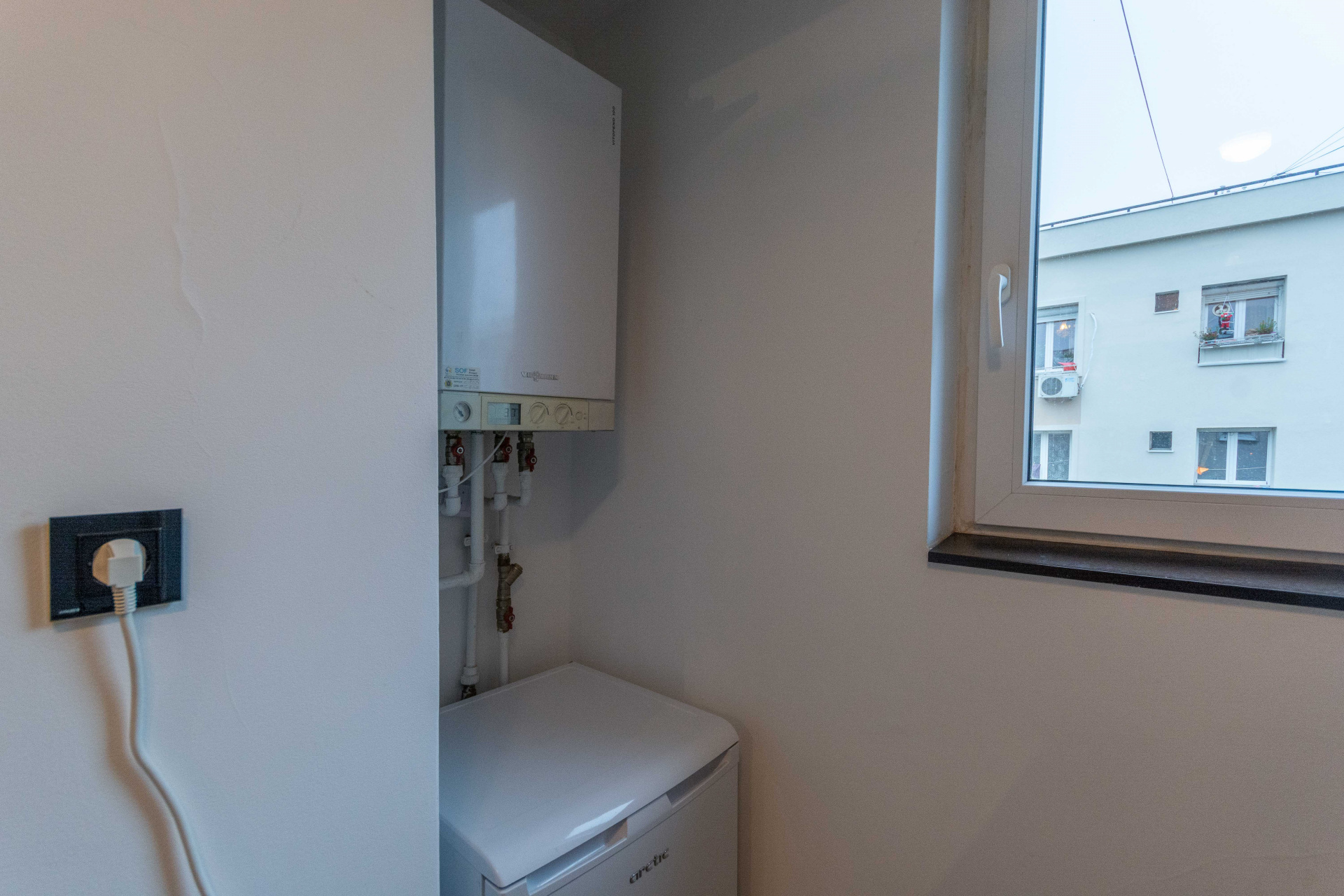 Incalzirea este realizata prin centrala termica proprie, iar racirea este asigurata prin aer conditionat de perete.