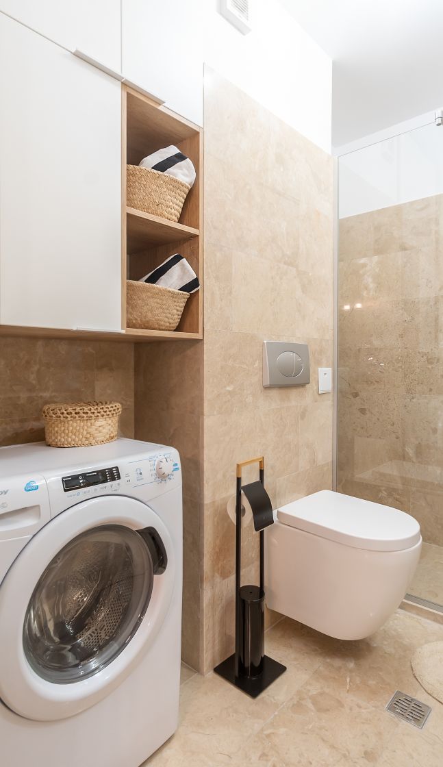 Va sunt puse la dispozitie : masina de spalat automata cu uscator, , combina frigorifica, televizor 4k Samasung. In bucatarie avem cuptor electric, plita pe gaz si o hota de putere mare.