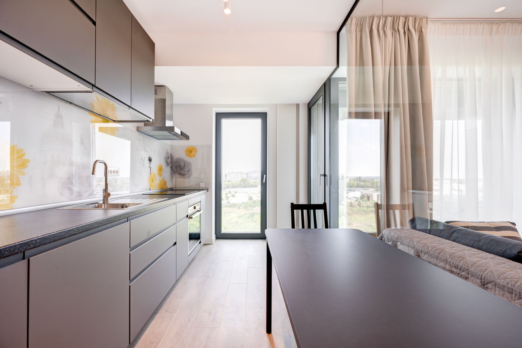 Va prezint spre inchiriere un apartament cu 2 camere, in suprafata total utila de 57.5 mp situat la etajul 5, in ansamblul Cloud9 Pipera.