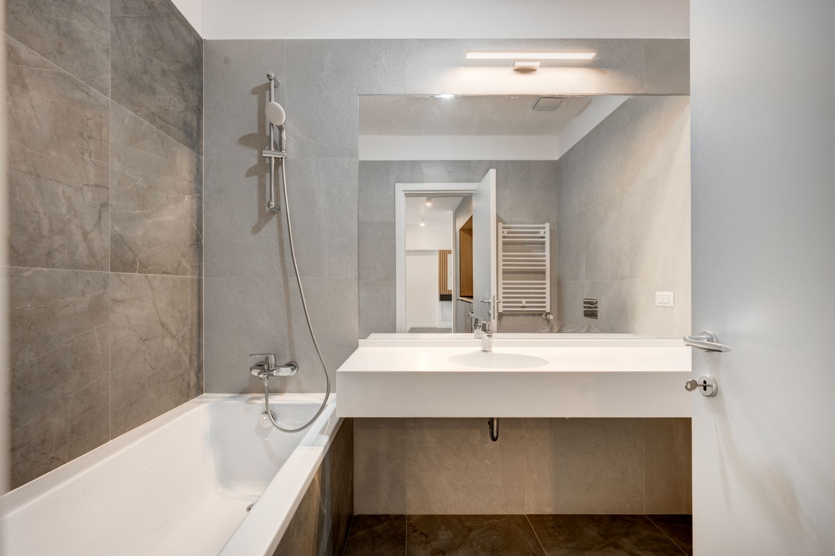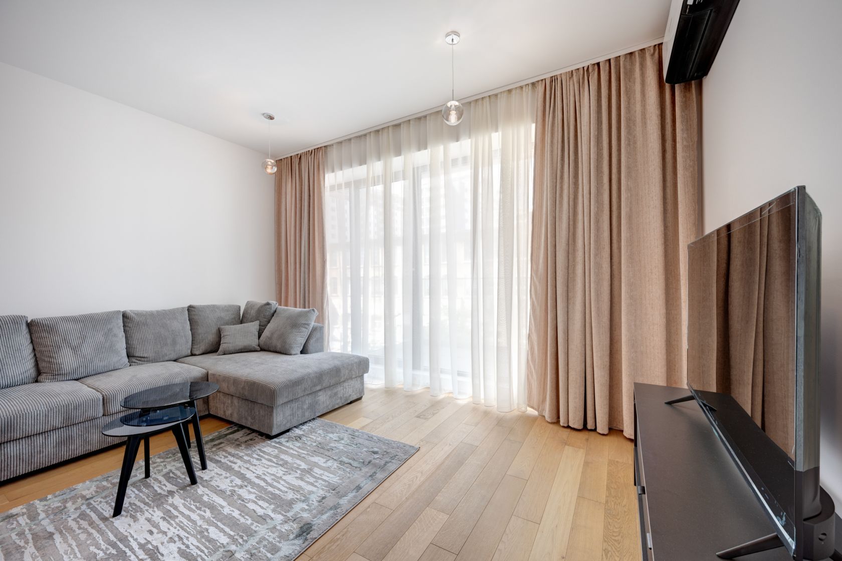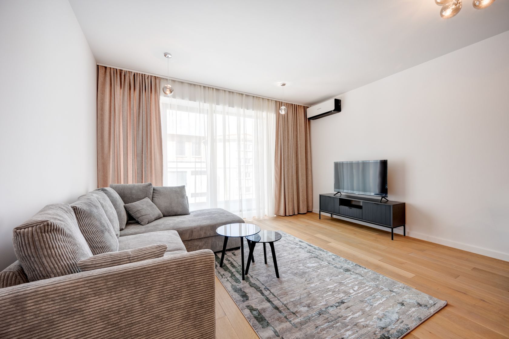 Apartament cu 2 camere - complet mobilat si utilat - prima inchiriere. Compartimentarea este excelenta, avand o zona de zi luminoasa si foarte generoasa ,de aproximativ 29 mp . Dormitorul in suprafata de 13,2 mp, are un pat matrimonial si un dulap incapator.