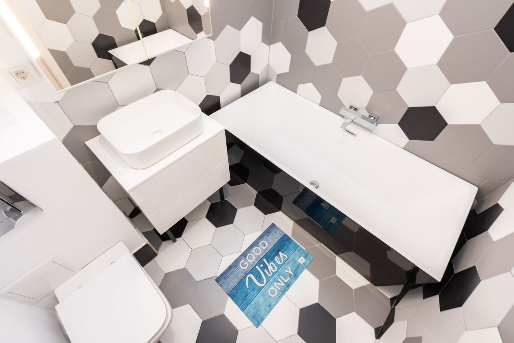 🔹 Pereți: Finisați cu vopsea lavabilă și faianță modernă