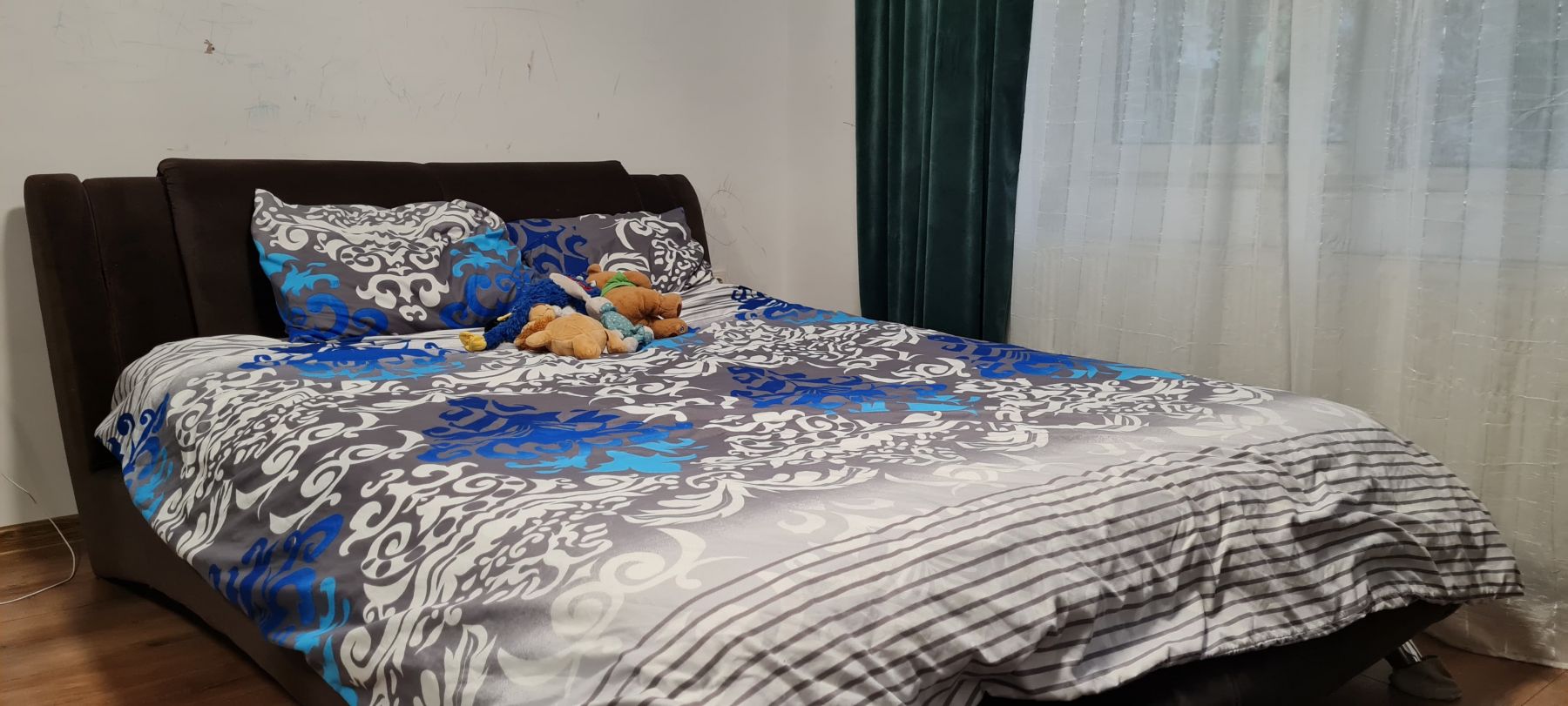 Dormitorul: Este generos, cu un pat dublu, dulapuri încorporate și o fereastră mare. Ideal pentru relaxare și odihna.