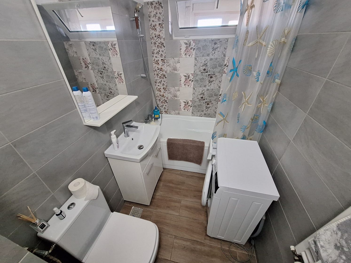 Imediat ce pășești în interior, vei fi întâmpinat de un ambient cald și primitor, mobilat cu bun gust și dotat cu tot ce ai nevoie pentru a te simți acasă. Bucătăria, mobilată cu stil din gama IKEA, este locul ideal pentru a găti mese delicioase. Este echipată cu electrocasnice incorporabile de la IKEA și o combina frigorifică Arctic, astfel încât totul să fie la îndemână.