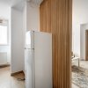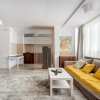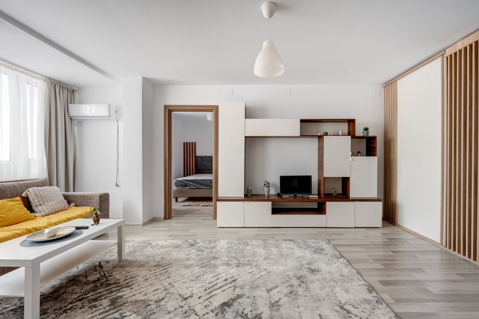 Personalitatea ii este data de riflajele din lemn, care separa vizual livingul de bucatarie si de partea de hol de la intrare.