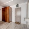 Holul de la intrare a fost amenajat recent pentru a avea spatii suficiente de depozitare in casa, dar care sa nu o incarce. Tot noi sunt mobilierul din dormitor si biblioteca.