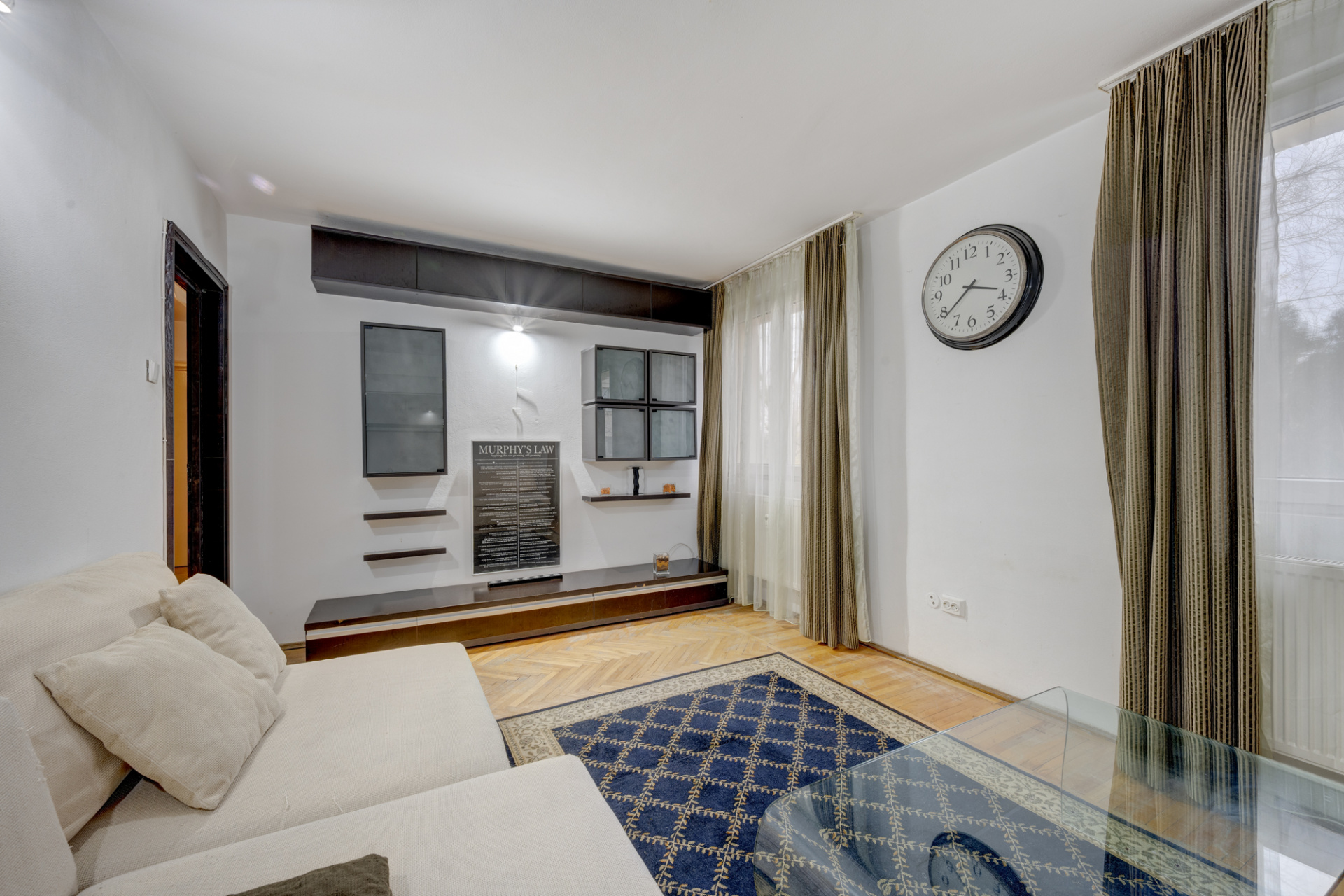 Apartamentul este situat la etajul 2/4, intr-un imobil reabilitat termic, construit in anii 1960. Apartamentul are configuratia initiala si nu are nicio modificare interioara. Este decomandat, are o suprafata de 46,5 mp utili distribuita astfel: hol 6,8 mp cu un spatiu de depozitare amenajat, debara, bucatarie 5,8 mp, dormitor 12 mp, sufragerie 17,2 mp si baie 3,7 mp.