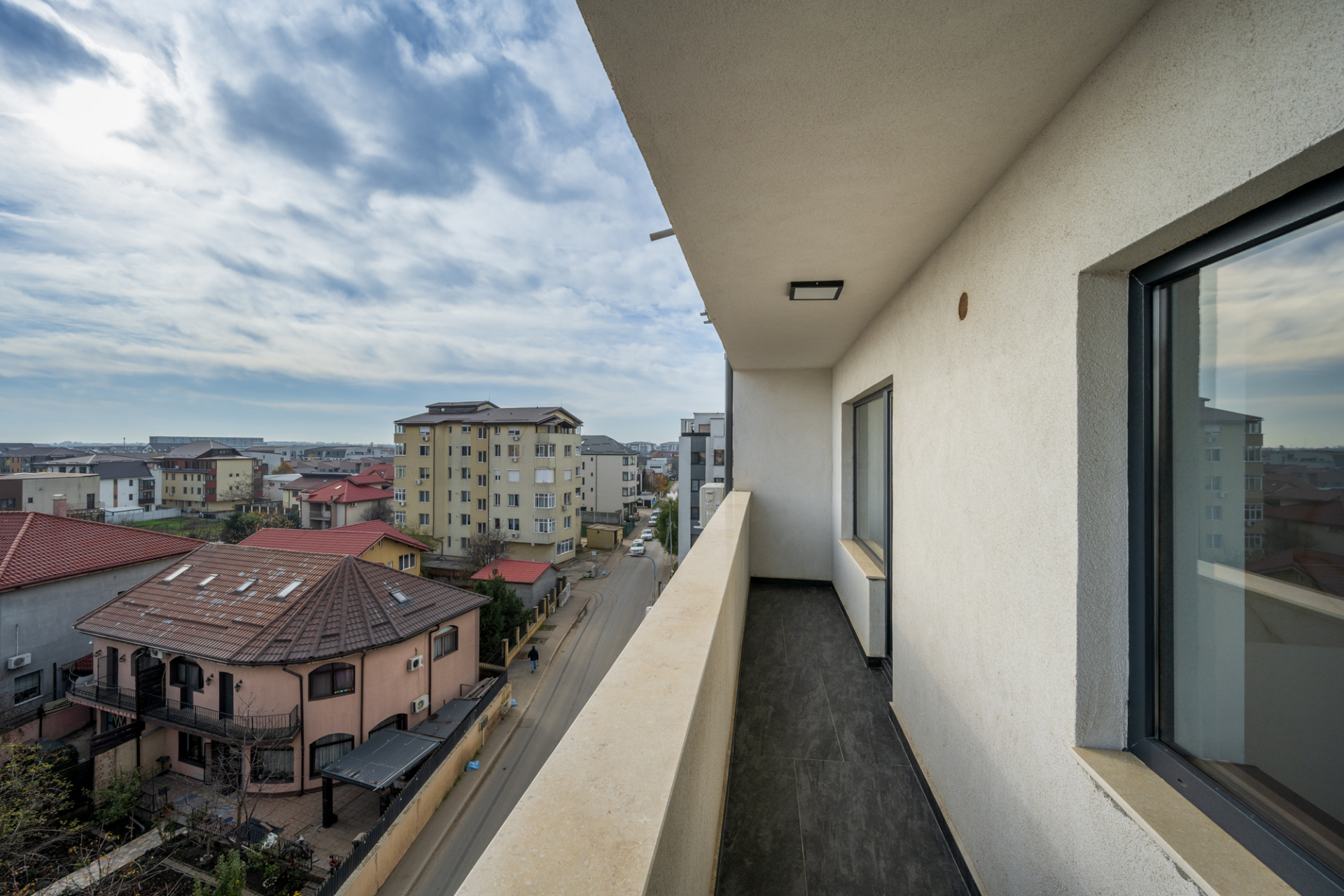 Apartamentul este situat la etajul 4/8, are o compartimentare decomandata cu o suprafata totala de 59,9 mp, din care suprafata utila de 52,6 mp si un balcon spatios in suprafata de 7,3 mp. Compartimentarea este extrem de practica si ideala, cu bucatarie inchisa si spatioasa( 8,6mp), un hol spatios, 1 grup sanitar, living, dormitor si un balcon generos cu acces atat din living cat si din bucatarie.
