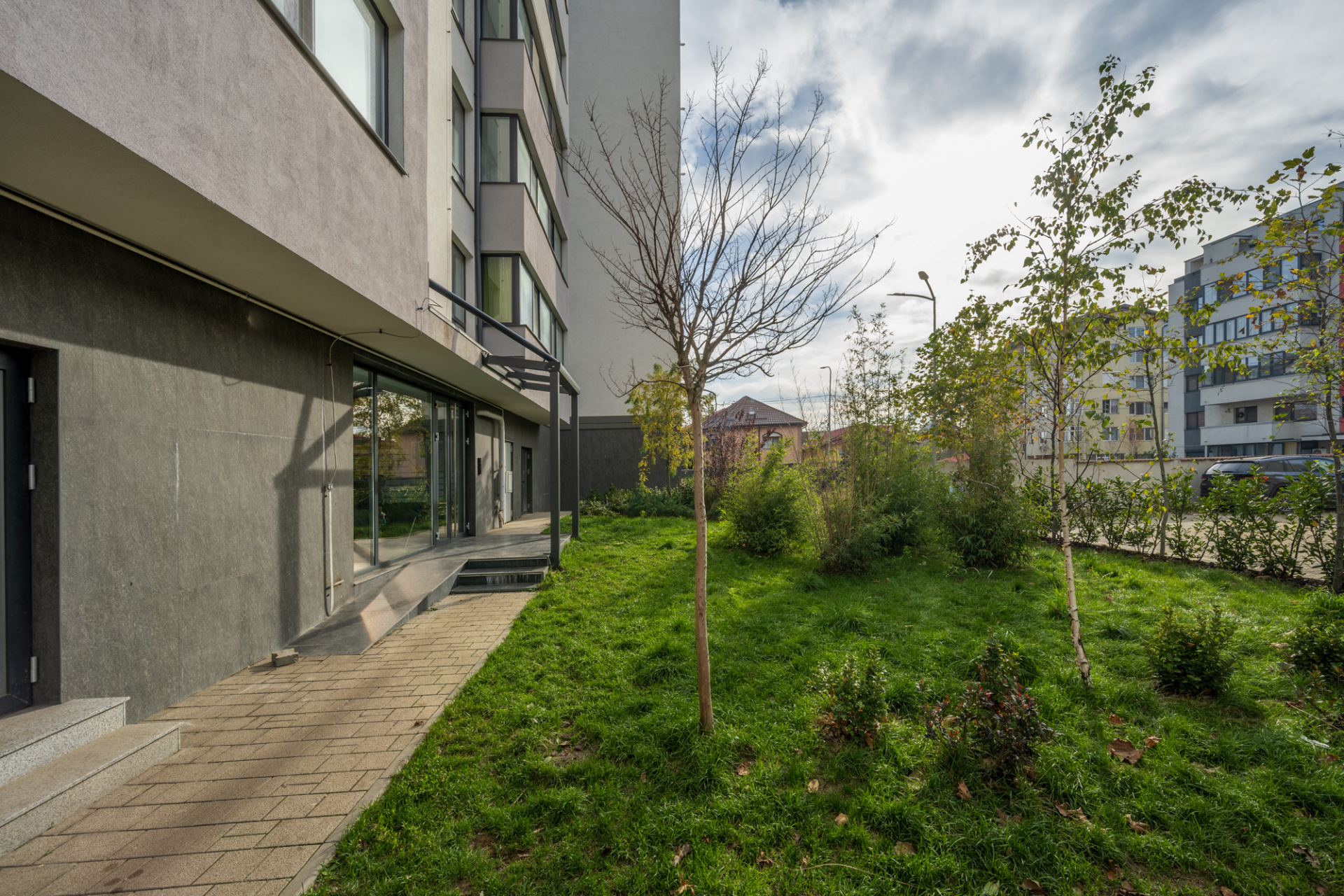 Imobilul are structura din cadre de beton si peretii interiori si exteriori din caramida, termoizolat exterior, cu regim de inaltime p+8 si beneficiaza de 2 lifturi moderne. Parterul imobilului este destinat spatiilor comerciale. Aleea de acces in imobil este amenajata cu spatii verzi iar accesul este securizat.