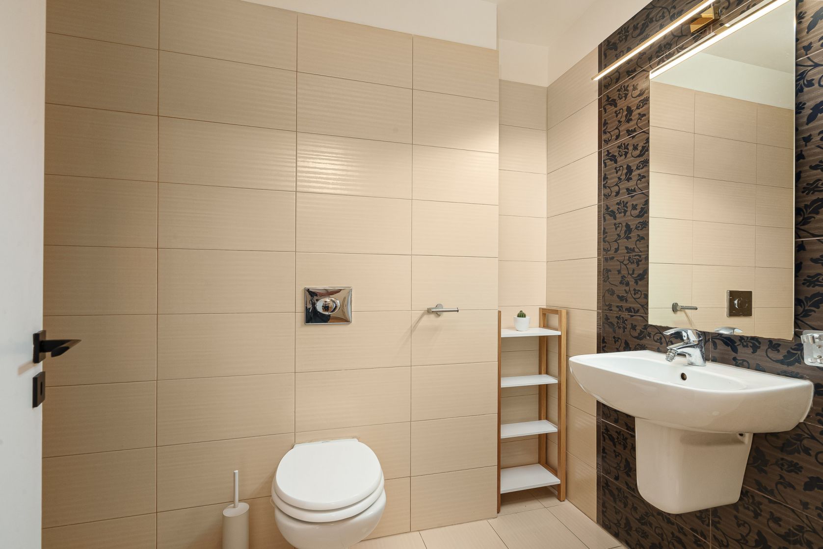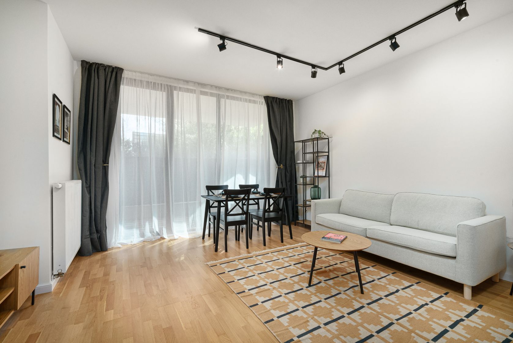 In 2010, Cordia livreaza in Piata Imobiliara „Parcul Privighetorilor”, un ansamblu rezidential format din doua blocuri S+P+4+5 retras, despartite de o gradina cu rol de promenada, blocuri ce cuprind un total de 119 apartamente si un subsol destinat parcarii subterane. Amplasat la intersectia dintre Iancu Nicolae si Aleea Privighetorilor, la numai cateva sute de metri de Baneasa Rezidential, Baneasa Shopping City si Ambasada Statelor Unite, dar si la lizierea Padurii Baneasa, ansamblul rezidential „Parcul Privighetorilor” a fost, este si ramane un reper al dezvoltarilor rezidentiale din nordul Bucurestiului. De-a lungul timpului, pozitia complexului, care confera rezidentilor sai mixul ideal intre natura si facilitatile orasului, au facut ca acesta sa fie preferat de expatii aflati in cautare de locuinte de inchiriat. Situat intr-o zona plina de rezidenti straini, angajati de multinationale si tineri antreprenori, corelat cu frumusetea spatiilor interioare, cu impartirea apartamentelor si calitatea finisajelor, „Parcul Privighetorilor” este una dintre destinatiile de inchiriere cele mai solicitate in piata. Dar haideti sa il descoperim impreuna. Suntem in blocul B, iar apartamentul este amplasat la parter. Din punct de vedere cardinal, apartamentul este pozitionat cu fata spre vest. Asta inseamna un plus de lumina, insa fara actiunea directa a razelor soarelui in ferestre. Apartamentul are o suprafata utila de 72 mp utili, carora li se adauga o terasa generoasa de 19 mp si o gradina de 40 mp. La intrarea in apartament suntem intampinati de livingul generos si luminos ce se amesteca cu bucataria deschisa, iar mai departe trecem intr-un hol ce ne duce catre cele 2 dormitore, dressing si baia principala. O delimitare excelenta intre zona de zi si cea de noapte, spatii largi, ferestre luminoase, incalzire prin centrala termica de bloc, utilitatile contorizate individual, servicii de mentenanta, amenajare peisagistica, personal de intretinere. O casa fara griji. Apartamentul, mobilat si utilat(mobilierul si electrocasnicele sunt noi), pregatit de mutare imediata, dormitorul mic se poate amenaja birou ori spatiu de locuit, in functie de nevoiea chiriasului. Noi consideram ca „Parcul Privighetorilor” este locatia perfecta, nu ramane decat sa va invitam la vizionare, pentru a va indragosti de apartament! 😊
