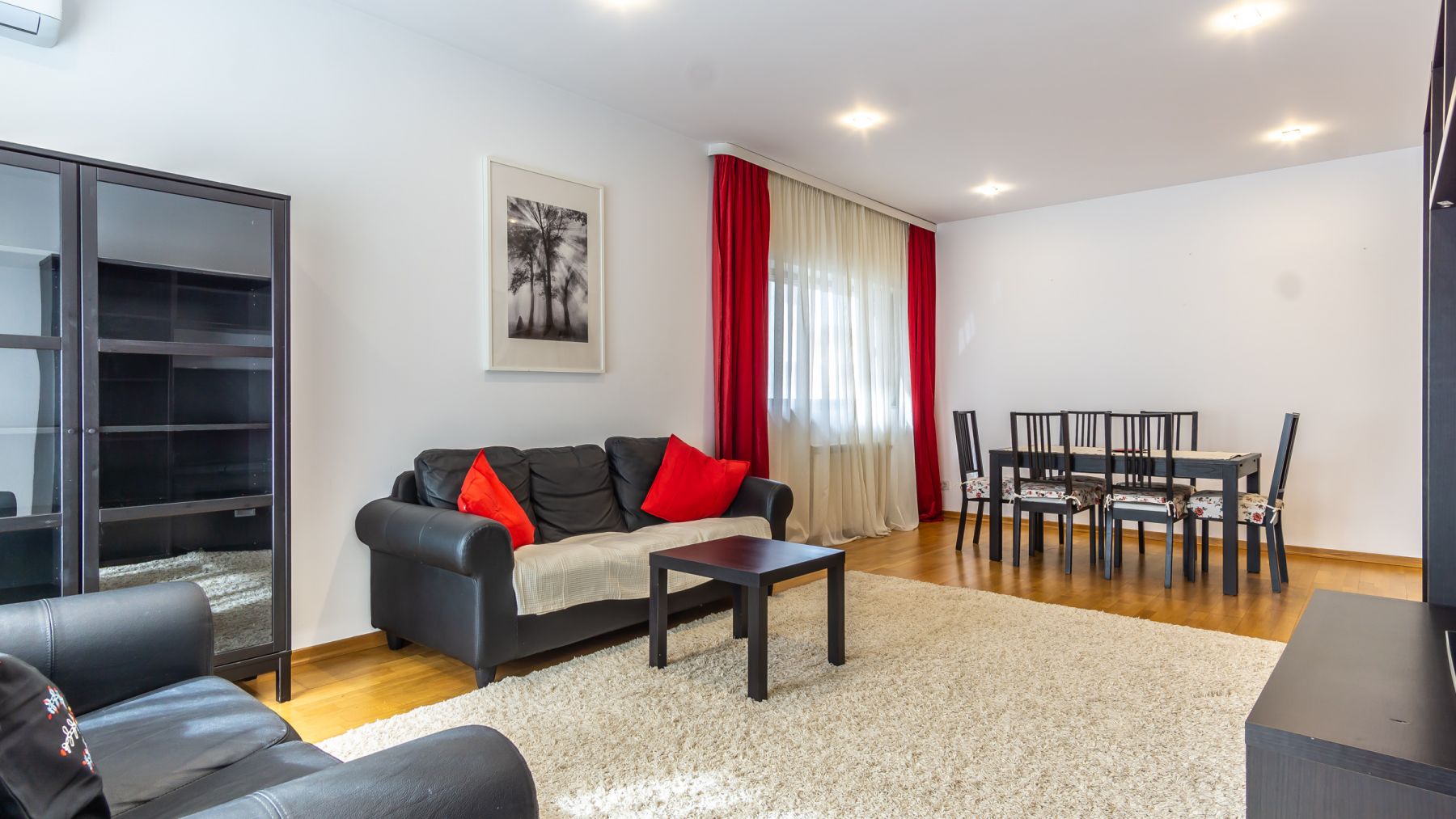 Va prezentam spre inchiriere un frumos apartament cu trei camere decomandat, 2 grupuri sanitare (unul cu cabina dus si celalalt cu cada si bideu), loc de parcare subteran, boxa si piscina in curtea complexului, situat în Baneasa, zona Petrom City, Str Nuferilor 50-58, cu finisaje de înaltă calitate și facilități superioare (spatii interior si exterior cu destinatia loc de joaca copii, sala de sport echipata modern, paza permanenta, sistem de monitorizare video).