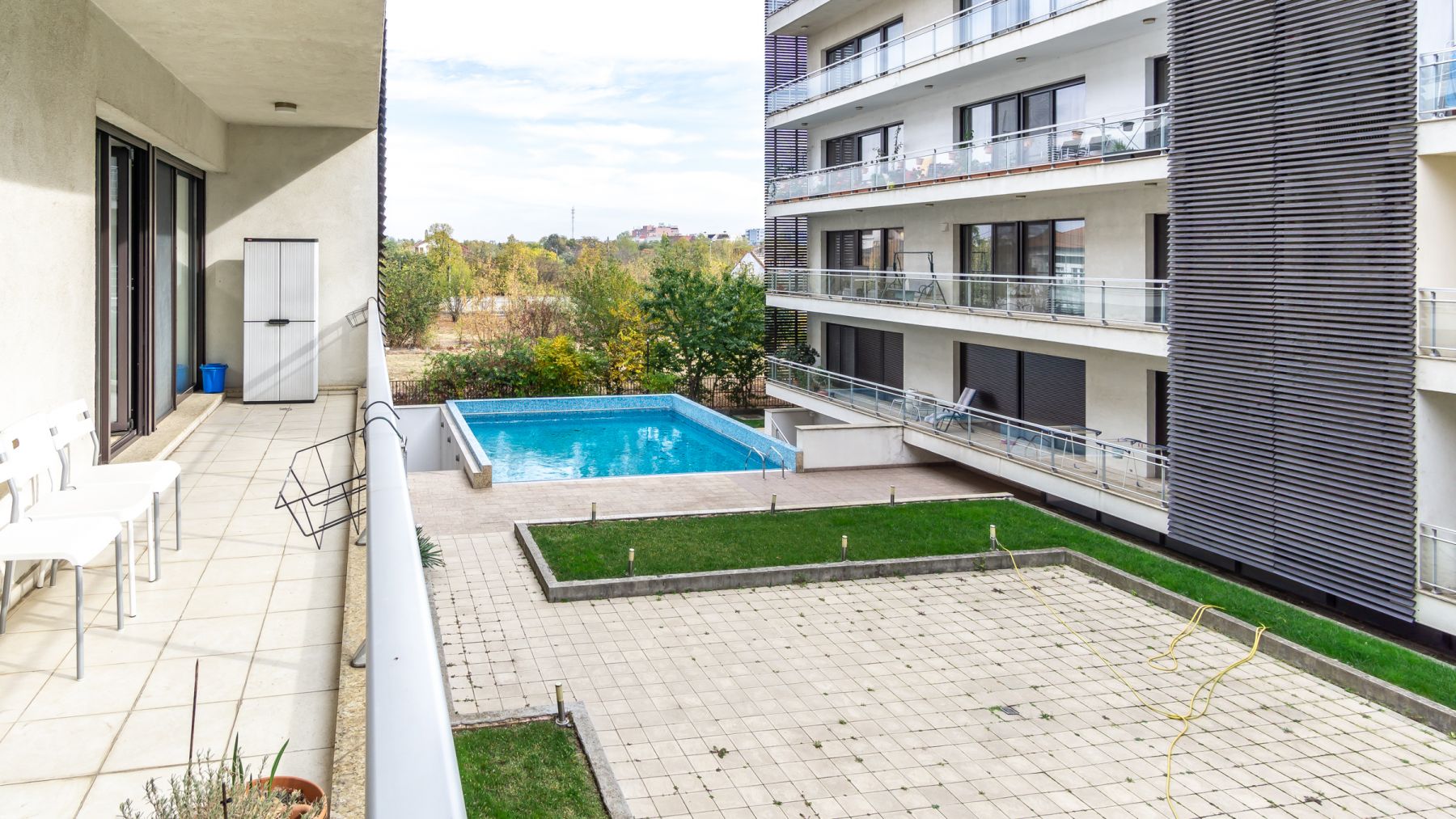 Exterior: Grădină cu piscina privată, unde puteți sărbători evenimentele cu familia și prietenii sau să vă bucurați de momentele de relaxare în aer liber. Un loc de parcare privat în subsolul blocului, pentru a vă asigura că mașina dumneavoastră este mereu în siguranță și la îndemână. O boxa cu acces facil la parterul imobilului pentru depozitare.