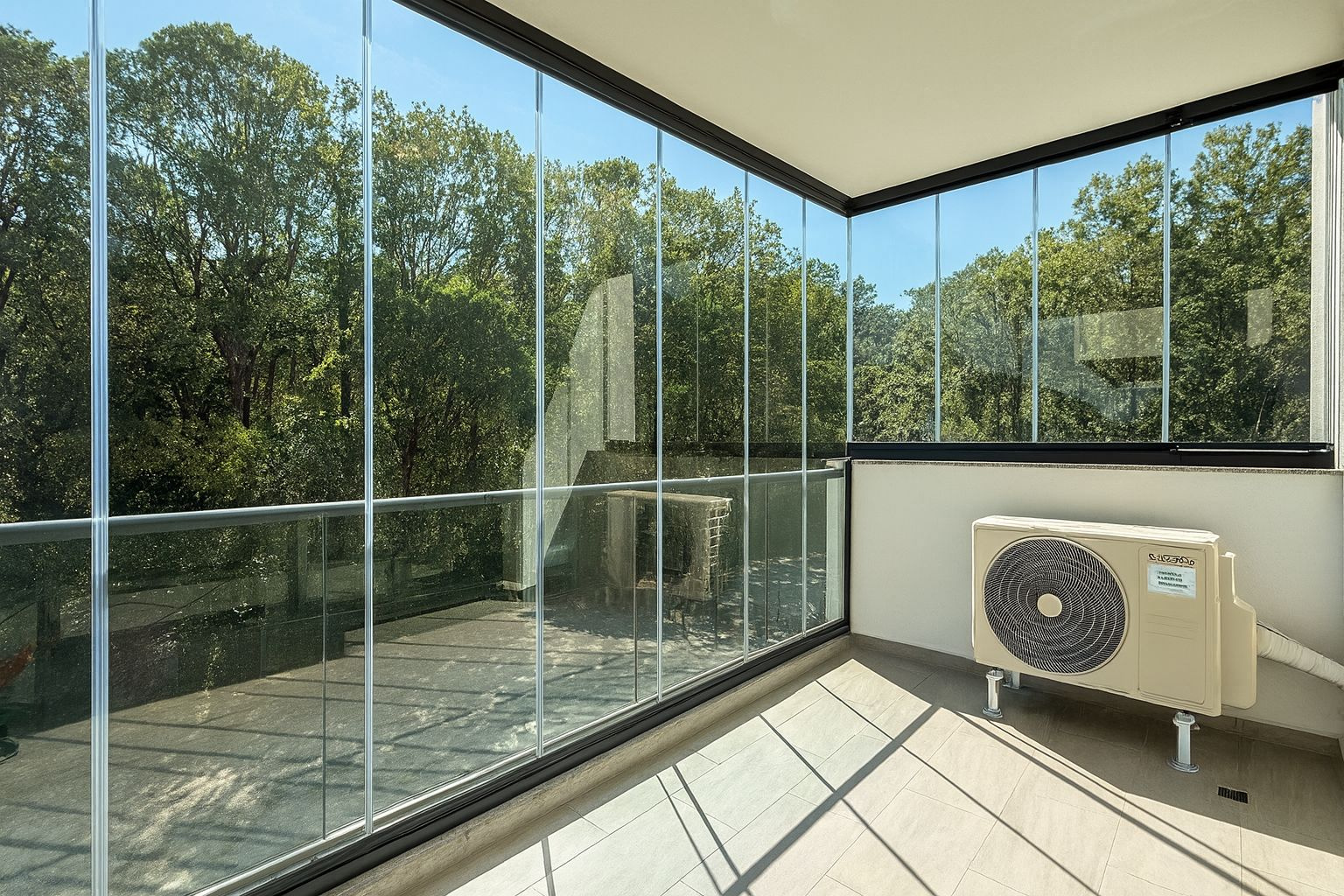 Balcon închis cu sticlă securizată, utilizabil tot timpul anului