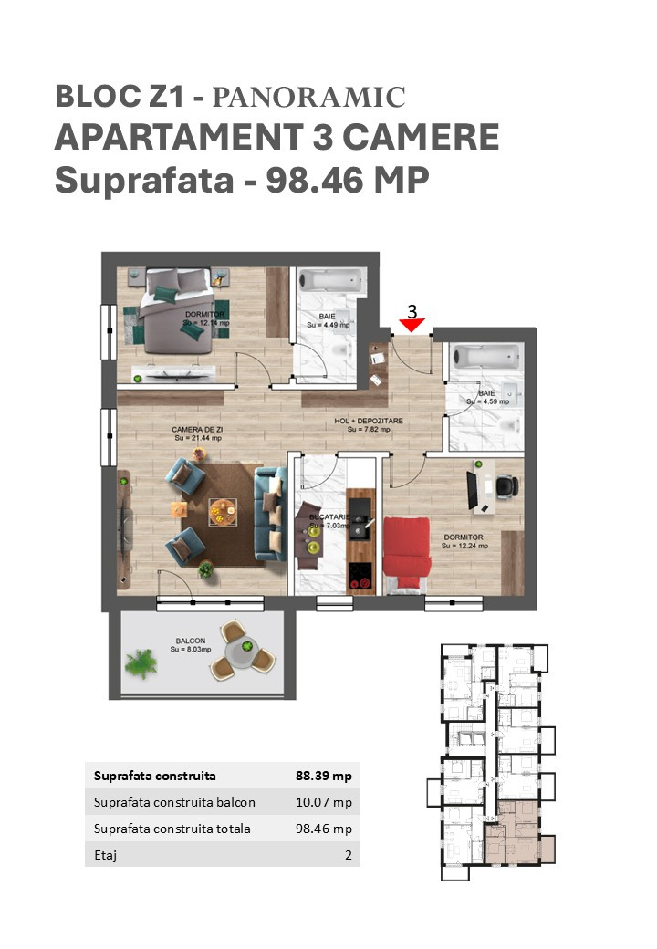 Loc de parcare subteran inclus (cu opțiune pentru al doilea loc)
