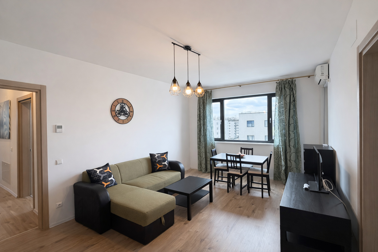 Luminos • Mobilat • Compartimentare eficientă • Lângă Pădurea Băneasa Situat în ansamblul Greenfield Residence – Cartier Salcâmilor, unul dintre cele mai apreciate proiecte rezidențiale din nordul Bucureștiului, acest apartament se bucură de o poziție excelentă în imediata proximitate a Pădurii Băneasa, oferind liniște, intimitate și aer curat. Un apartament spațios, luminos și foarte bine compartimentat, cu o suprafață utilă totală de 77 mp, ideal pentru o familie sau pentru profesioniști care își doresc un stil de viață confortabil într-un mediu verde și sigur. Locuința beneficiază de numeroase spații de depozitare, mobilier realizat pe comandă și o ambianță caldă datorită luminii naturale generoase. Living generos cu zonă de dining, acces pe balcon și lumină naturală din plin Bucătărie închisă, complet mobilată și utilată Dormitor matrimonial cu pat king size Dormitor secundar / birou, ideal pentru copii sau lucru de acasă Două băi moderne, echipate complet Hol larg cu dressing încastrat pe toată lungimea Balcon cu vedere deschisă către spațiile verzi ale cartierului Greenfield este cunoscut pentru: Vecinătate directă cu Pădurea Băneasa Comunitate modernă, liniștită și sigură Acces rapid spre Băneasa Shopping City, Aeroportul Otopeni Transport public direct către oraș Parcuri, locuri de joacă, centre comerciale, sală de sport, școli și grădinițe în proximitate Apartamentul este disponibil imediat pentru închiriere. Prețul include locul de parcare!