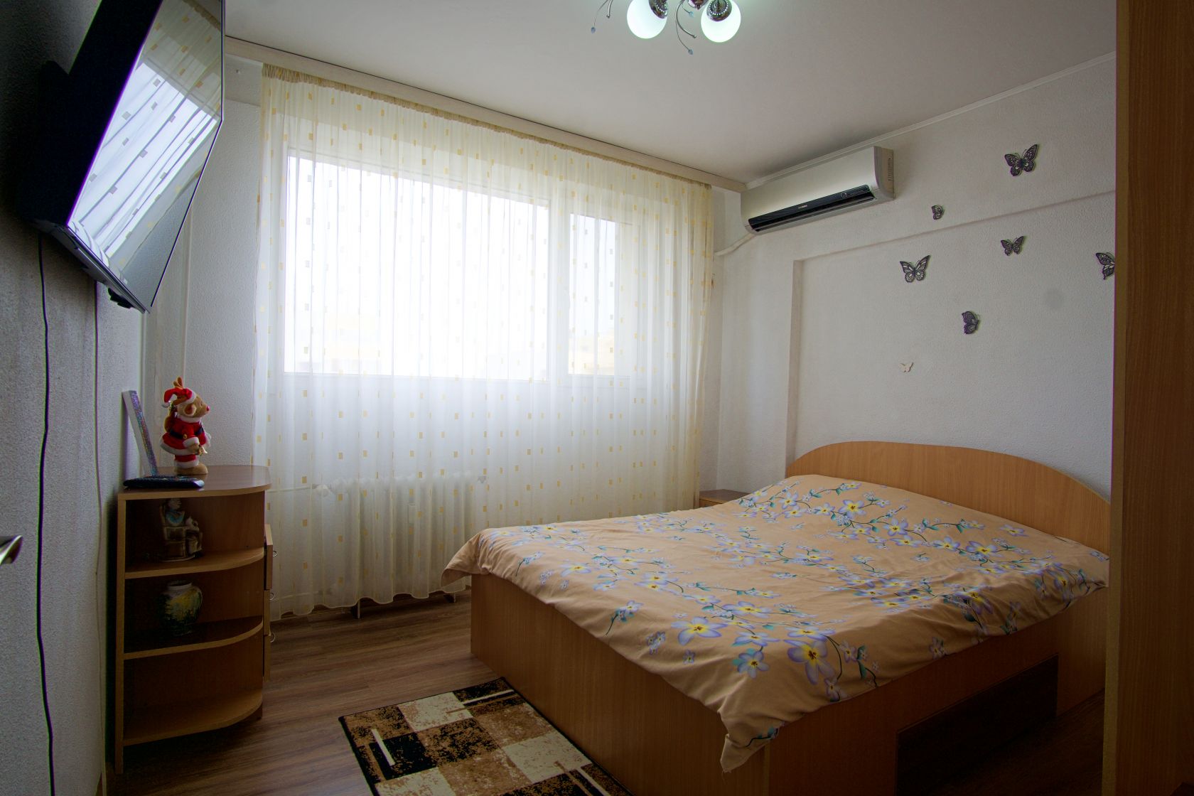 Locuinta aflata la etajul 8 din 10 intr-un bloc reabilitat termic, este complet mobilata si utilata fiind dotata cu aer conditionat, frigider, aragaz, masina spalat rufe, cuptor microunde si 3 tv tip LCD.