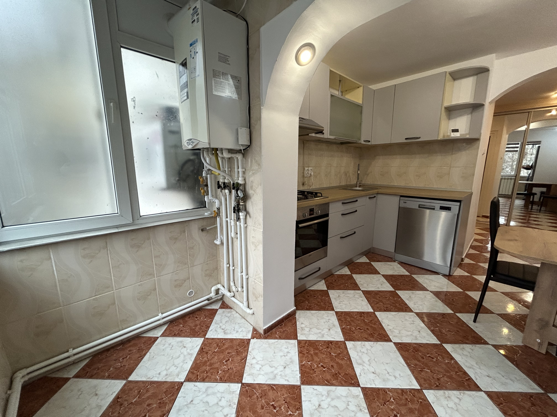 - Utilat complet (mașină de spălat, mașină de spălat vase, aragaz+hotă, frigider, TV)