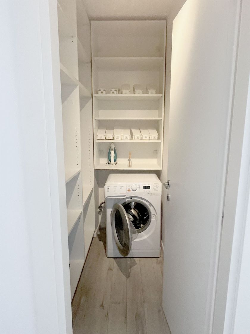 Bucătăria este complet utilată și echipată modern, inclusiv cu mașină de spălat vase, oferind tot confortul necesar. Balconul este încorporat în bucătărie, mărind spațiul util.