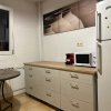 Apartamentul este complet mobilat si utilat cu elctrocasnice (plita pe gaz, cuptor electric, frigider, masina de spalat rufe, aspirator, espressor de cafea, TV living, aer conditionat living). Exista numeroase spatii de depozitare atat in camere cat si pe hol.