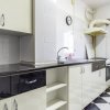 Locuinta are canapea extensibila si 2 paturi duble, fiind utilata cu 2 TV, masina de spalat rufe, frigider, aragaz cu hota cu aerisire.