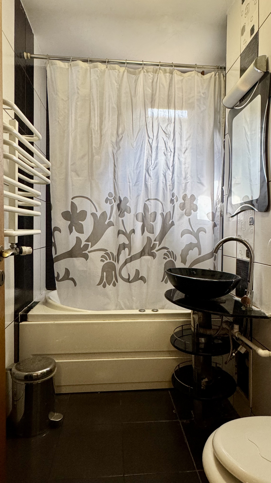 Apartamentul este echipat cu aer condiționat, mașină de spălat, cuptor electric și jaluzele la geamuri, iar pentru un plus de confort există și boiler la baie, util în cazul întreruperilor de apă caldă. De asemenea, locuința beneficiază de sistem de alarmă la ușă, oferind un nivel sporit de siguranță.