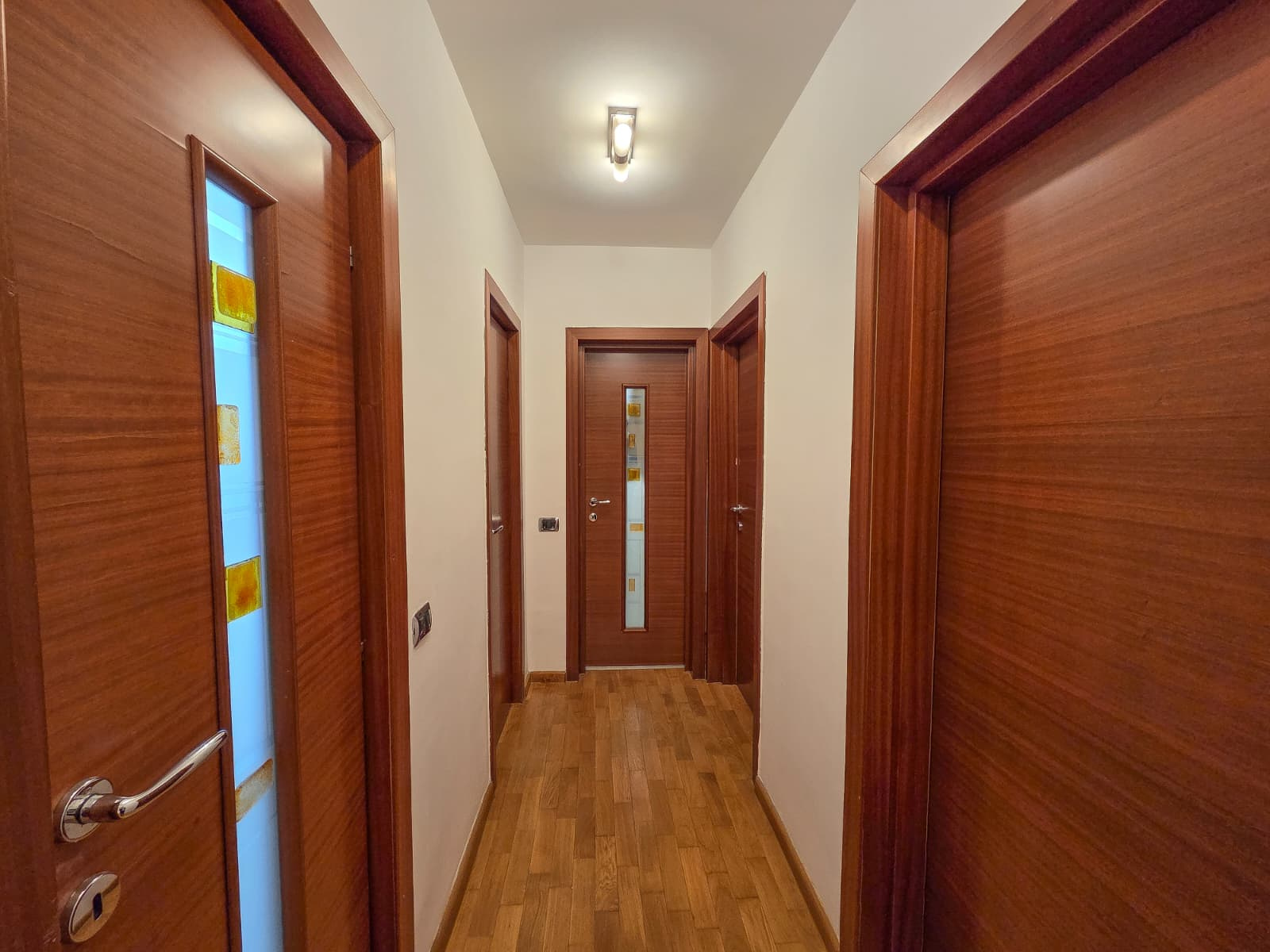 Ca facilitati apartamentul dispune de tamplarie PVC cu geamuri termopan, gresie faianta in baie si bucatarie, parchet in camere, vopsea lavabila, doua aparate de aer conditionat, doua spatii de depozitare, doua grupuri sanitare, bucataria complet utilata si mobilata, un mobilier de depozitare in living si jaluzele verticale pe fiecare geam.