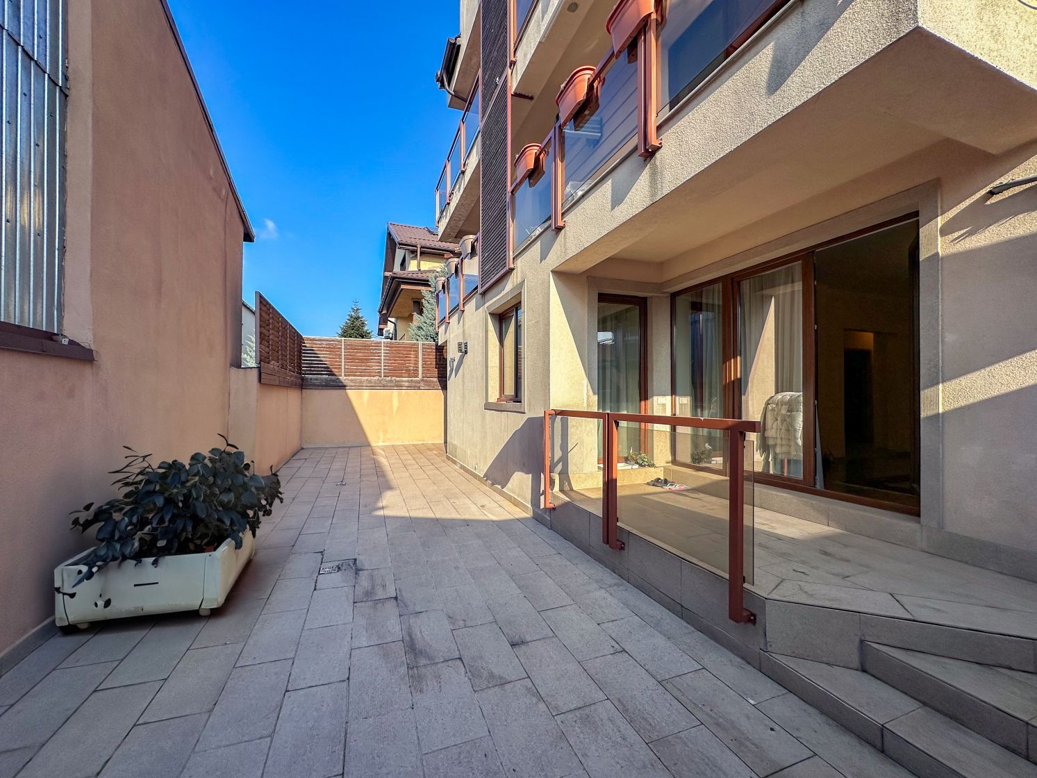 Apartamentul este ideal pentru o familie, are o suprafață utilă totală de 95mp, la care se adaugă o curte generoasă de 115 mp, perfectă pentru relaxare, și două locuri de parcare – unul în subteran și unul în fața blocului.