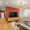 Apartamentul spatios de 90mp amenajat de o echipa de design interior beneficiaza si de o curte proprie de 77mp fiind localizat la parter . Dispune de un living spatios de 30 mp, doua dormitoare din care unul este transformat in dressing, doua bai mari de aprox 5 mp, una cu dus si una cu cada si o bucatarie plus camara de aprox 12mp. Accesul in curtea prorprie se face din cele 3 incaperi si din bucatarie. Toate materialele folosite sunt high end cu finisaje si dotari premium dupa cum urmeaza: