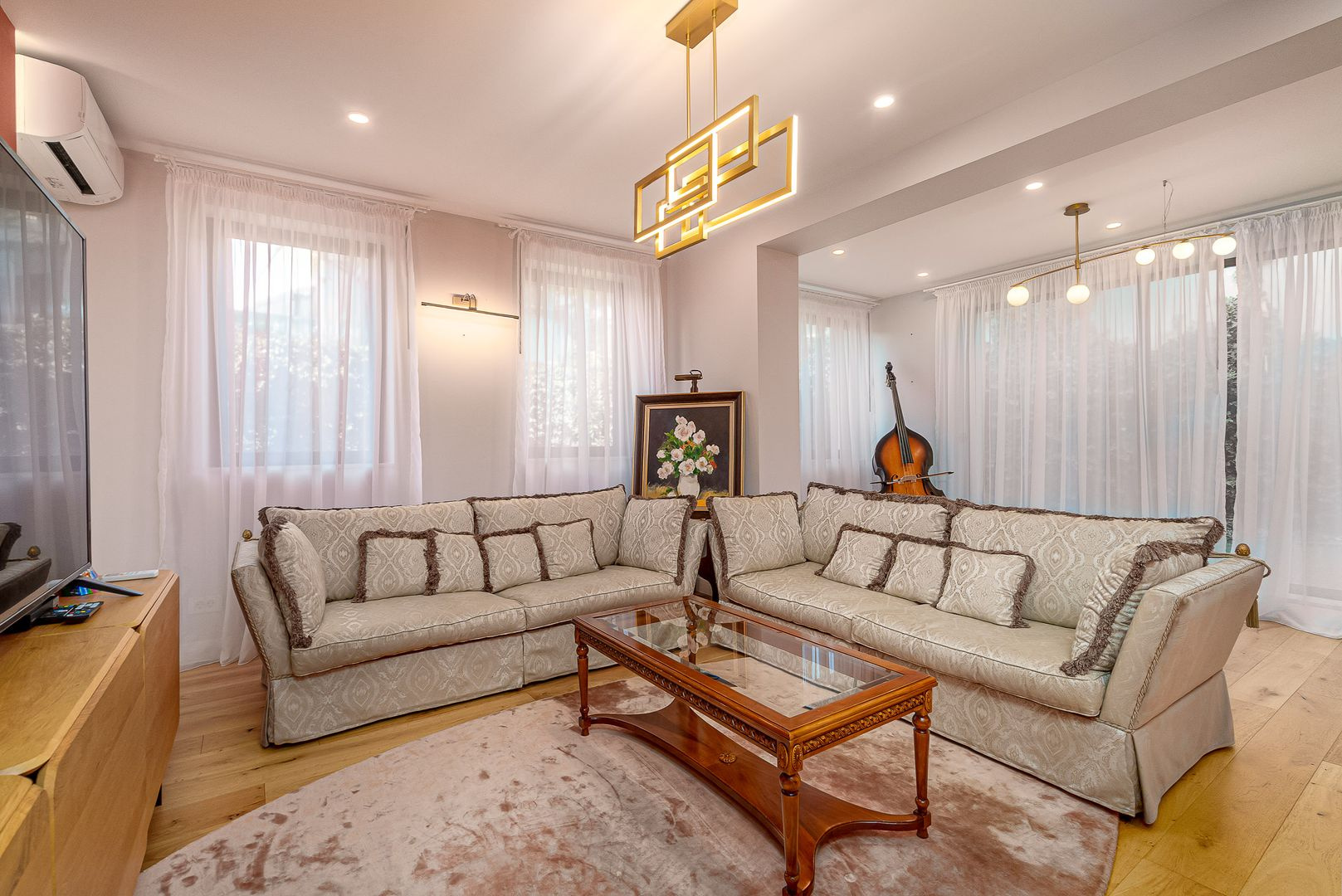 In pretul afisat se vinde impreuna cu dressingul din dormitor, corpuri de iluminat design si cu bucataria mobilata si utilata pe comanda cu blat si contrablat din piatra naturala si cu urmatoarele electrocasnice: