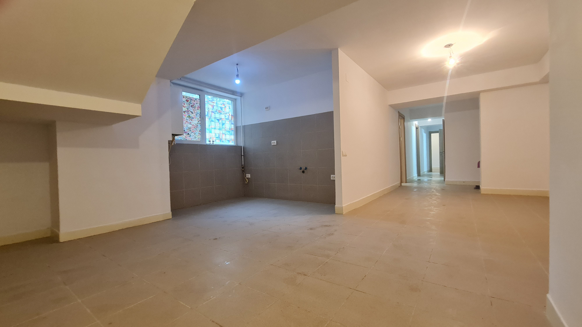 Apartamentul open-space este situat la demisolul blocului cu 5 etaje, construit in 2014 si dispune de o suprafata de 93mp.
